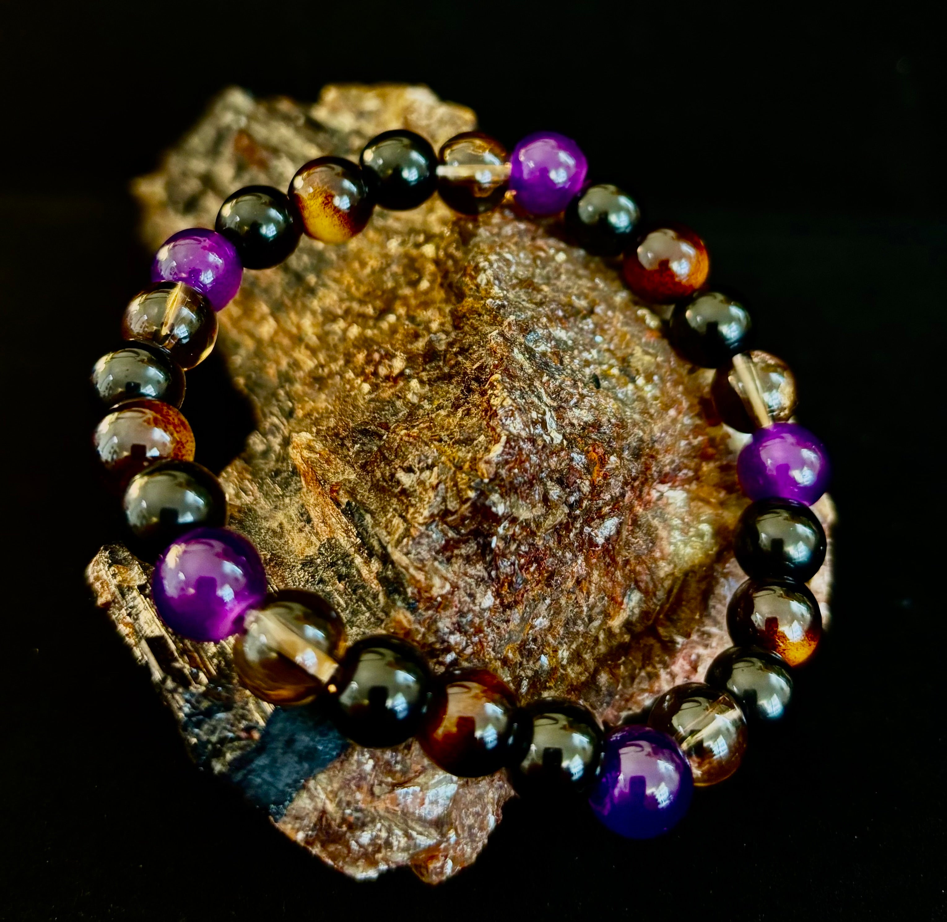 Astrophyllite with Garnet Bracelet – Grounded Transformation & Passionate Strength (8mm Beads)
