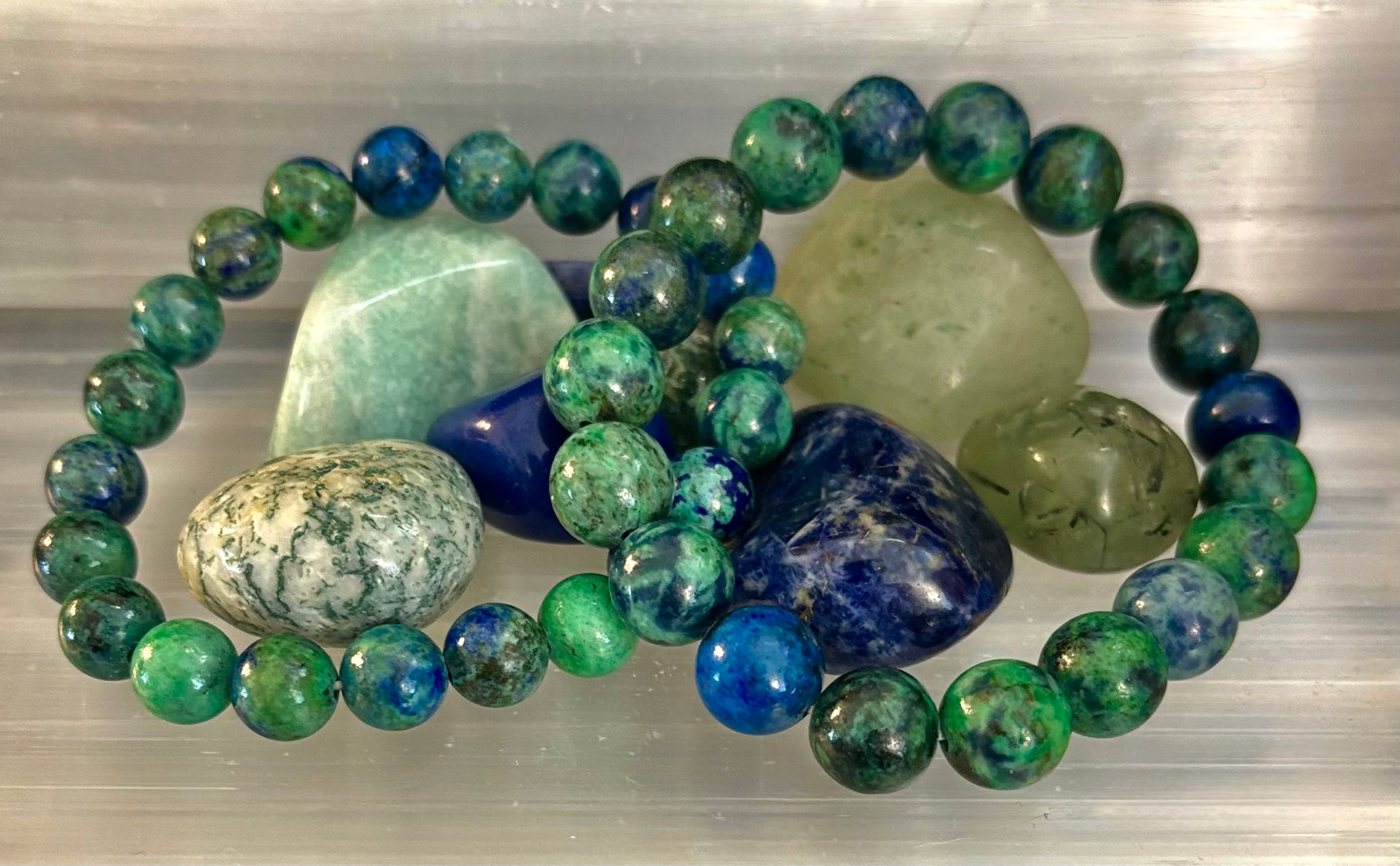 Azurite Beaded Stretch Bracelet – 8mm & 10mm Options | Spiritual Clarity & Deep Healing