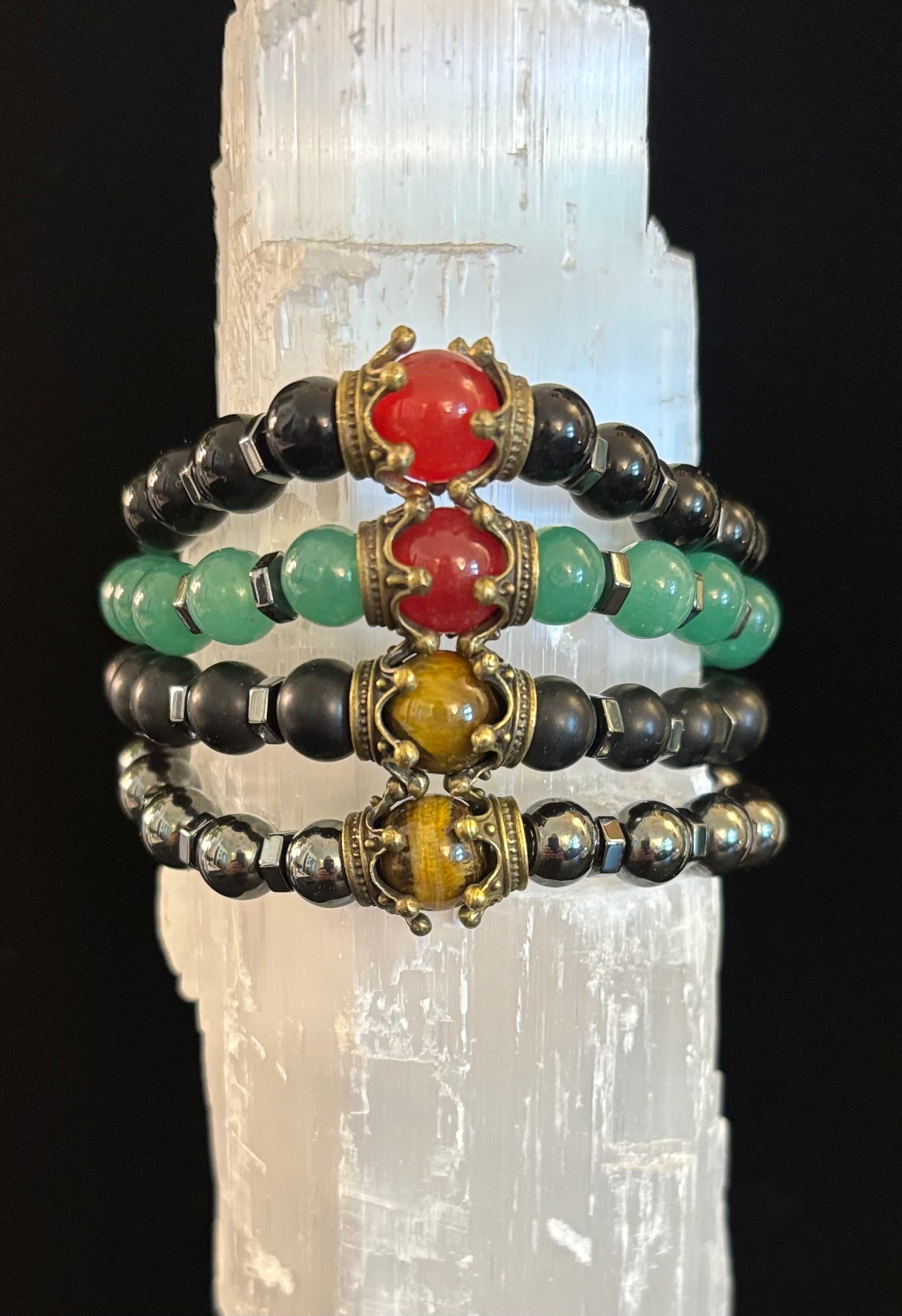 Crowned Energy Protection Bracelet – 8mm Natural Stone Beads (Multiple Colors Available)