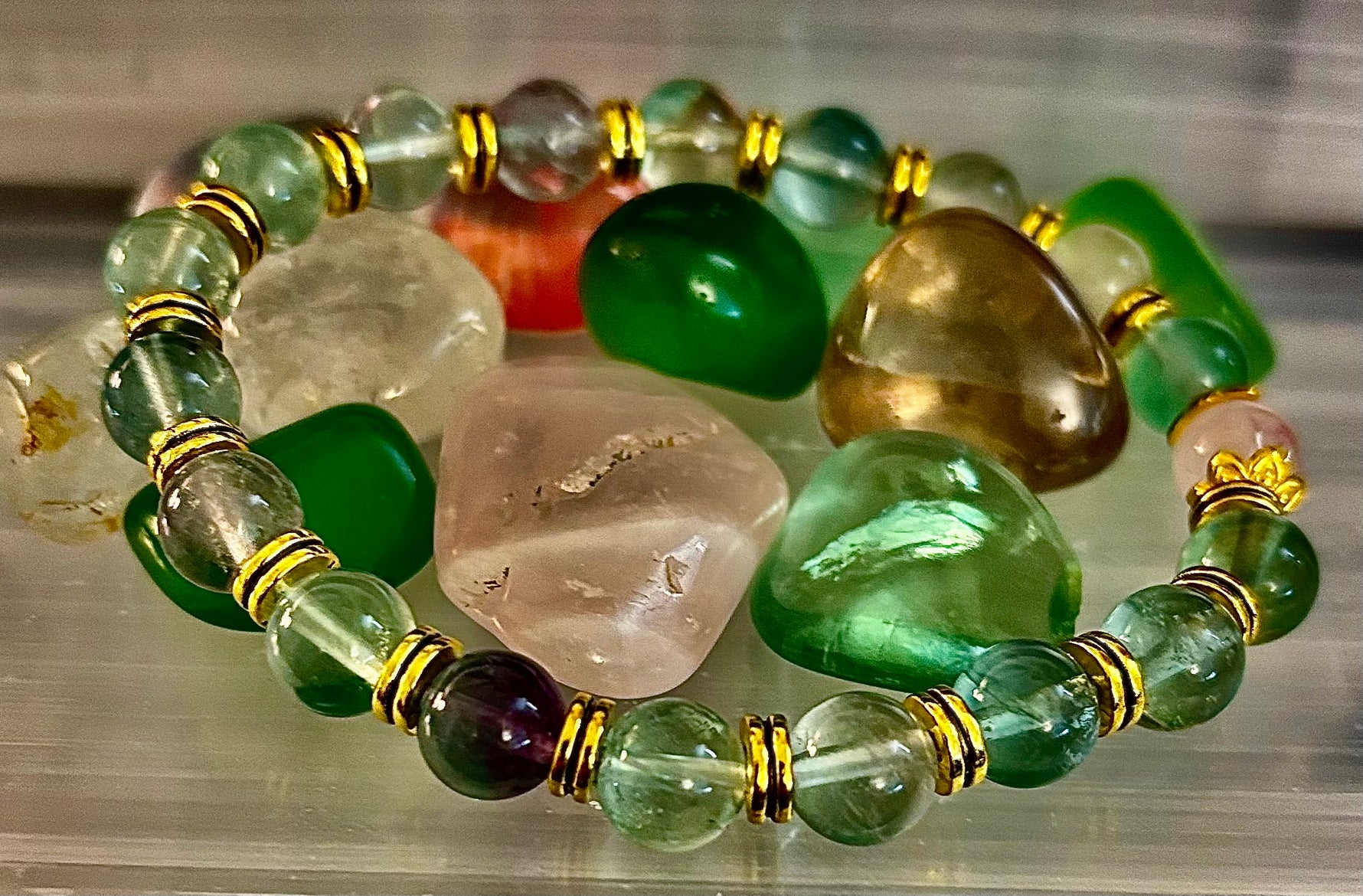 Gemstones: Rainbow Fluorite (clarity & protection) + Rose Quartz center (love & compassion)