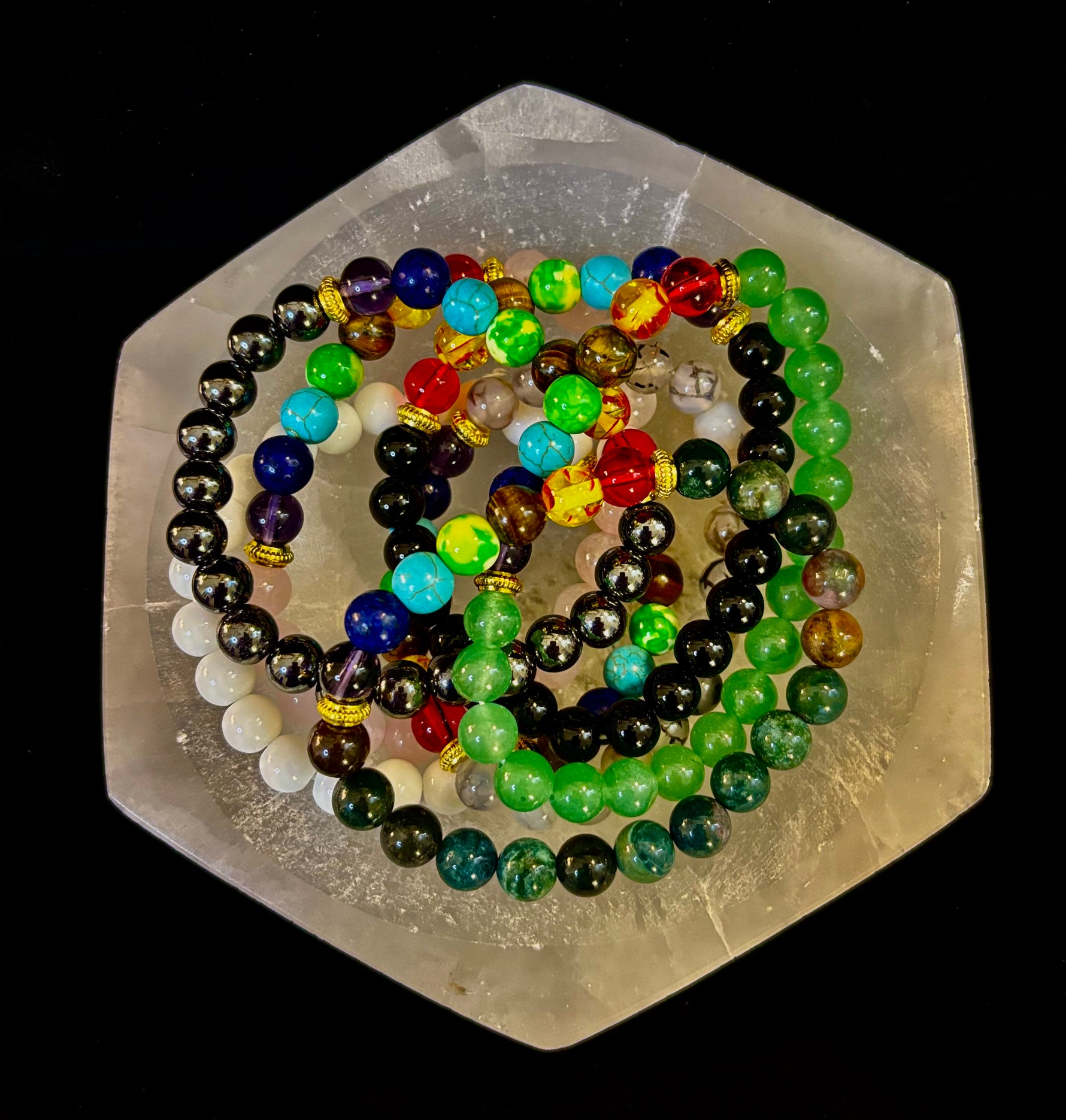 Wear one each day to match your intention β or stack your favorites to boost multiple energy centers at once. Perfect for meditation, chakra work, or simply adding color and meaning to your daily style.