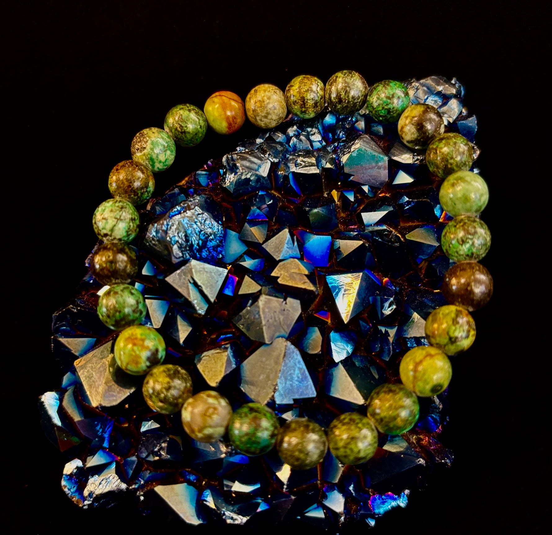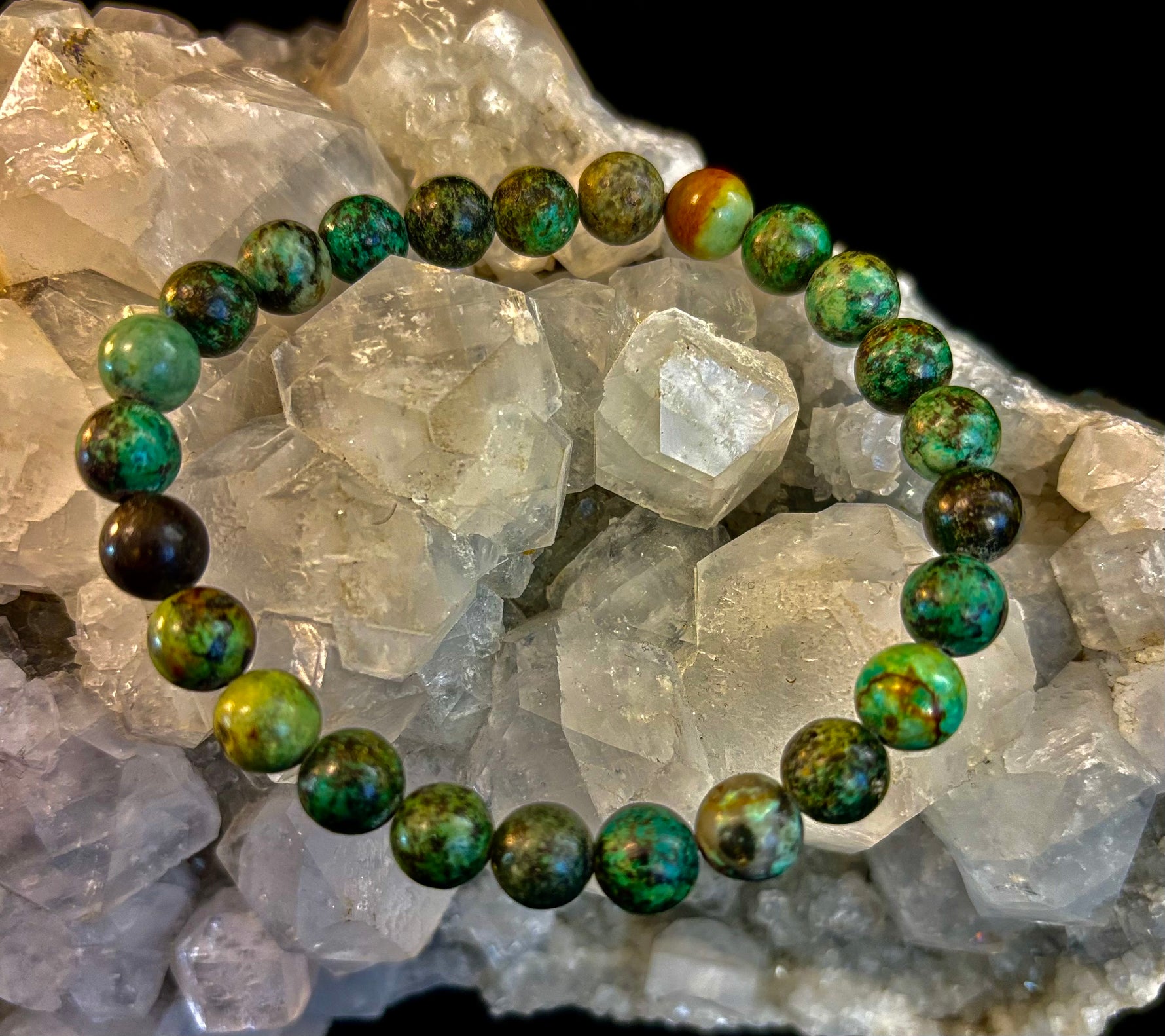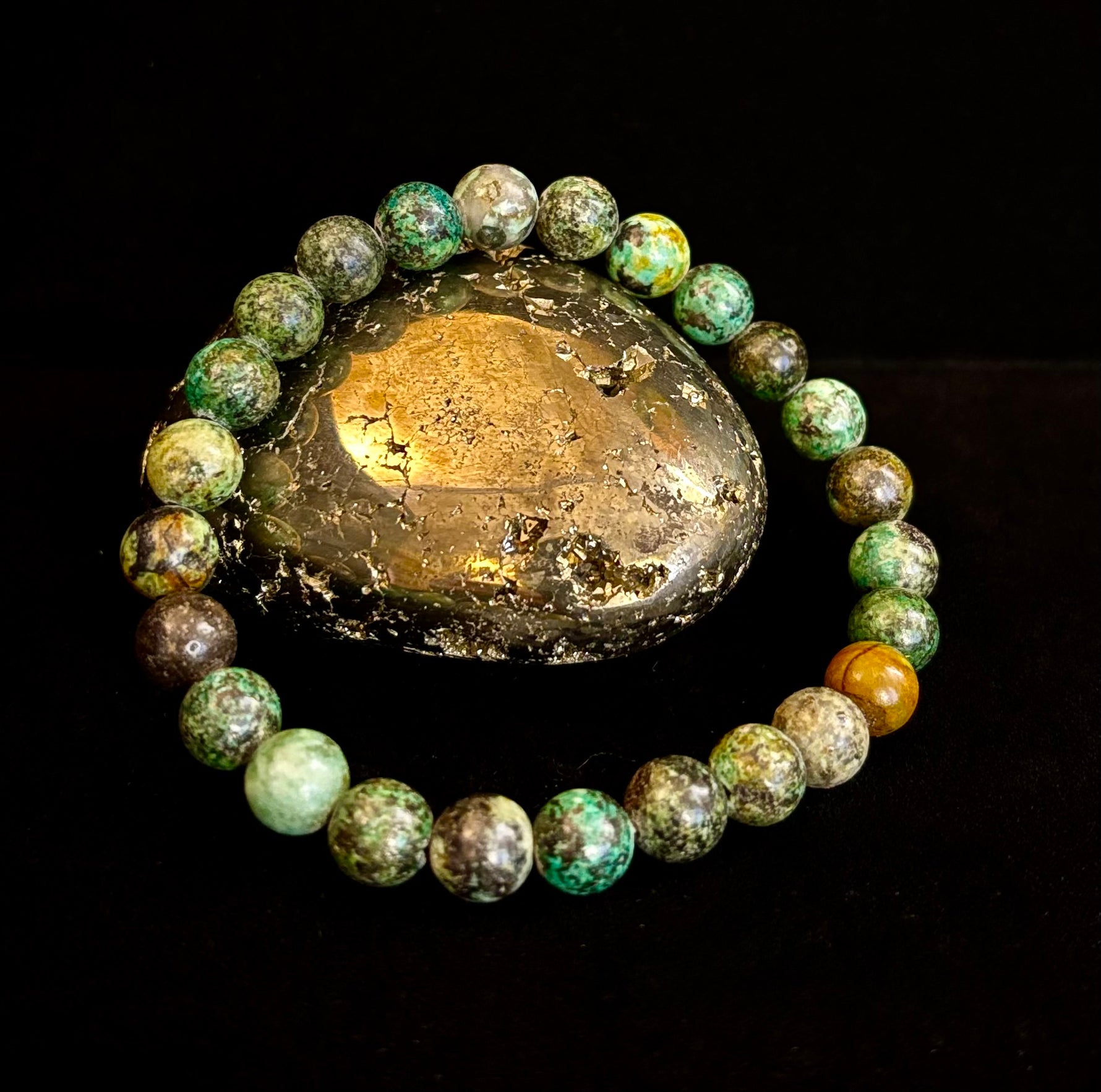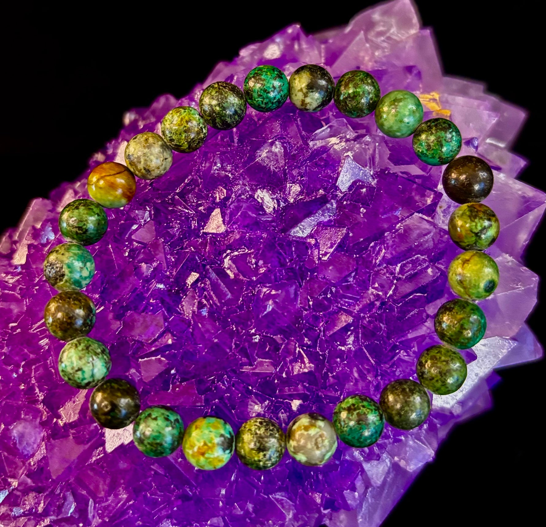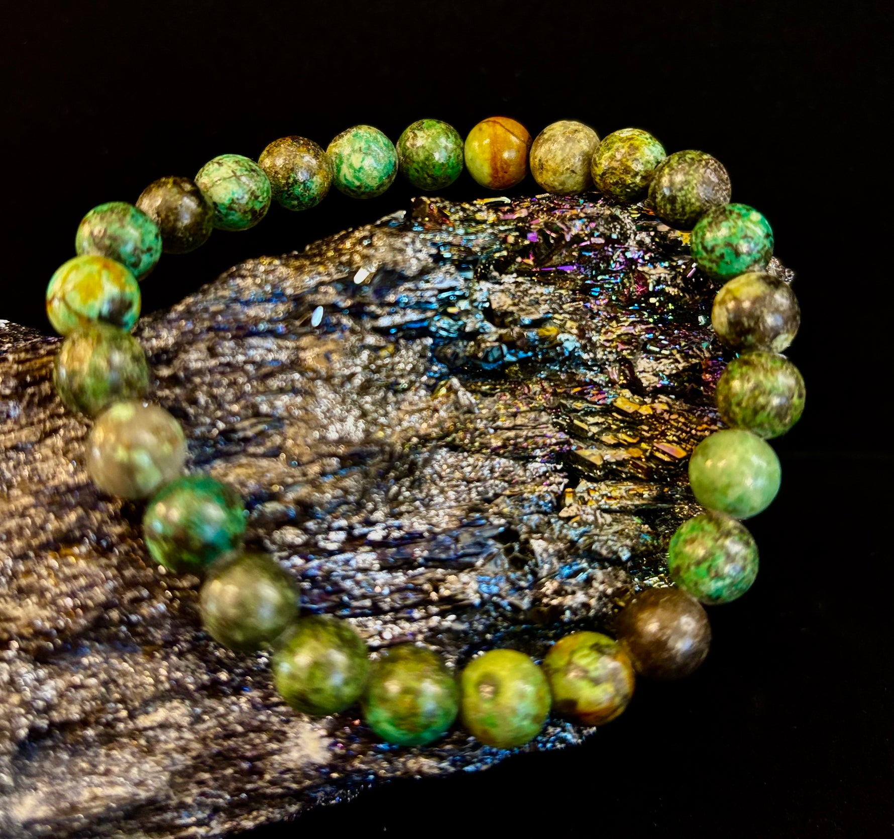 Embrace growth, transformation, and aligned manifestation with our African Turquoise crystal healing bracelet, handcrafted with smooth 8mm natural gemstone beads, Reiki-infused, and sized comfortably for medium to large wrists. Often called the Stone of Evolution, African Turquoise is believed to support positive change, renewed purpose, and confidence when stepping into new chapters.