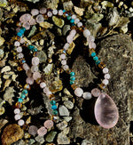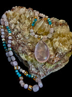 Add a touch of calm and confidence to your look with our Blush Glow Harmony Necklace, a beautifully designed statement piece that combines soft pinks, tranquil blues, and warm amber tones for a soothing, balanced aesthetic. The teardrop pendant catches the light perfectly, while the mix of faceted and smooth beads gives this necklace a one-of-a-kind artisan feel.