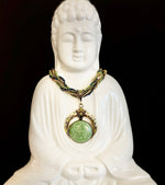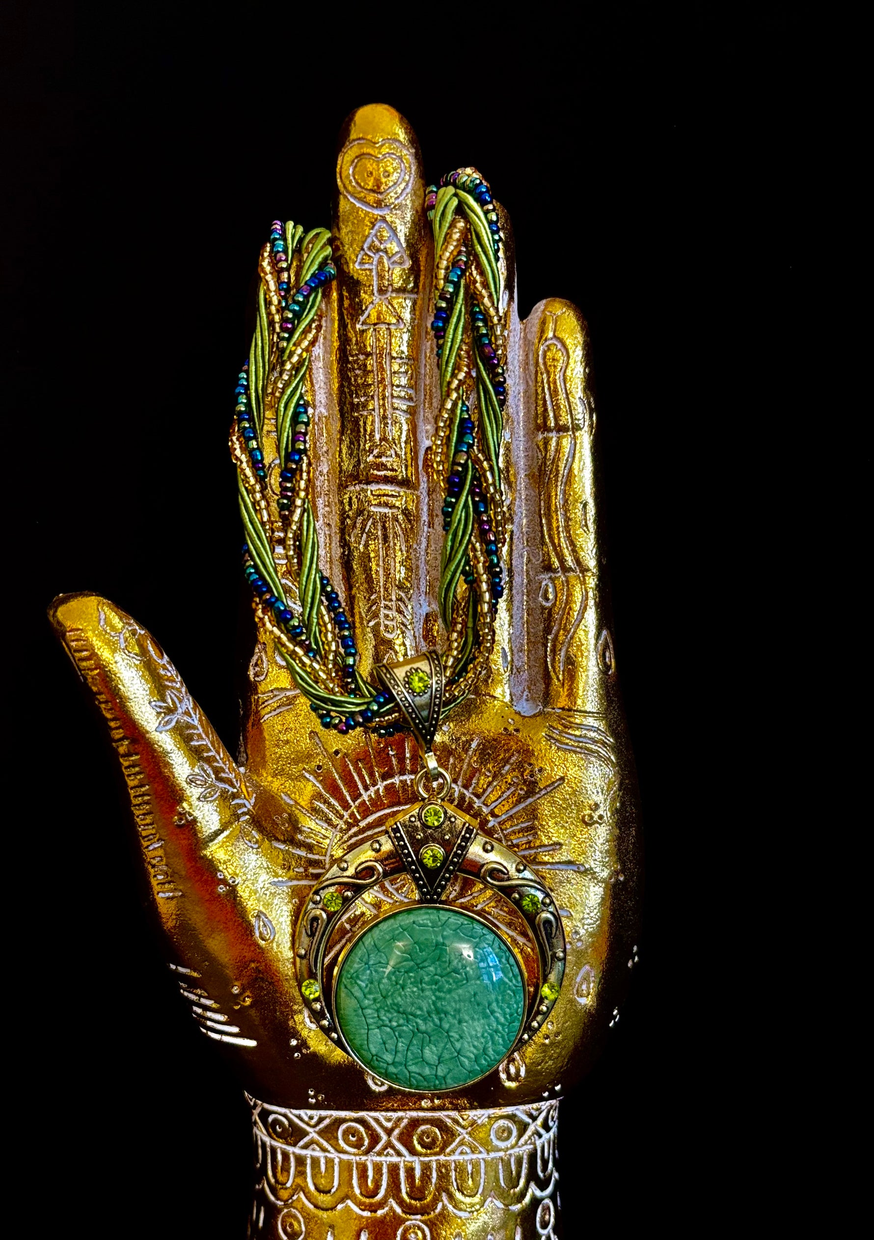 Bohemian Green Goddess Necklace | Handmade Vintage-Inspired Beaded Statement Pendant