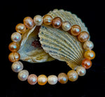 Graceful and naturally radiant, this cultured freshwater pearl bracelet features approximately 8 mm pearls in soft, luminous hues ranging from creamy white to warm blush and golden tones. Each pearl is uniquely shaped, giving the bracelet an organic, one-of-a-kind character that highlights the beauty of nature’s imperfections.