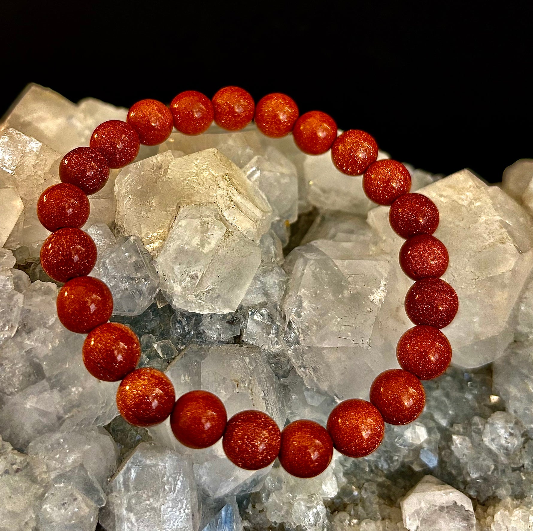 Shimmer with intention wearing our Goldstone Beaded Bracelet, crafted with smooth 8mm beads and designed for medium wrists. Known for its warm copper sparkle, Goldstone is often associated with confidence, motivation, and forward momentum, making it a favorite for those manifesting goals and embracing new opportunities.