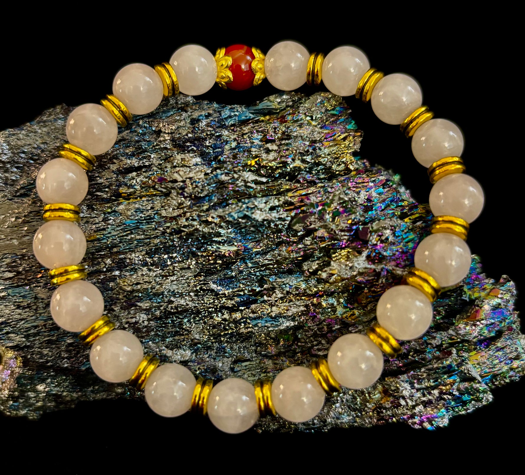 Open your heart and invite love in every form with the Love Surrounds You Bracelet, a delicate fusion of Rose Quartz and Banded Carnelian accented with shimmering gold tones. Designed to radiate compassion, confidence, and warmth, this bracelet is a daily reminder that love truly begins from within.
