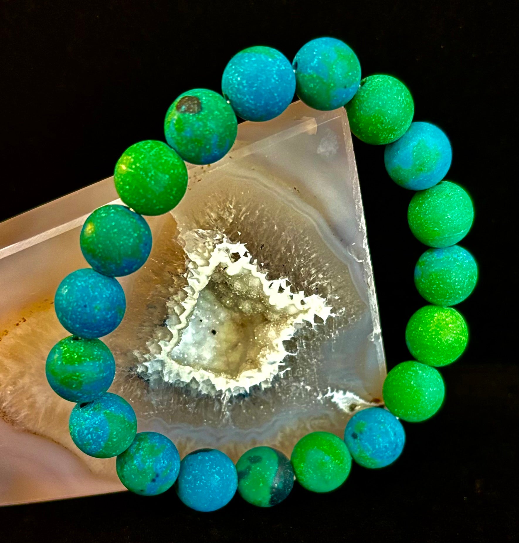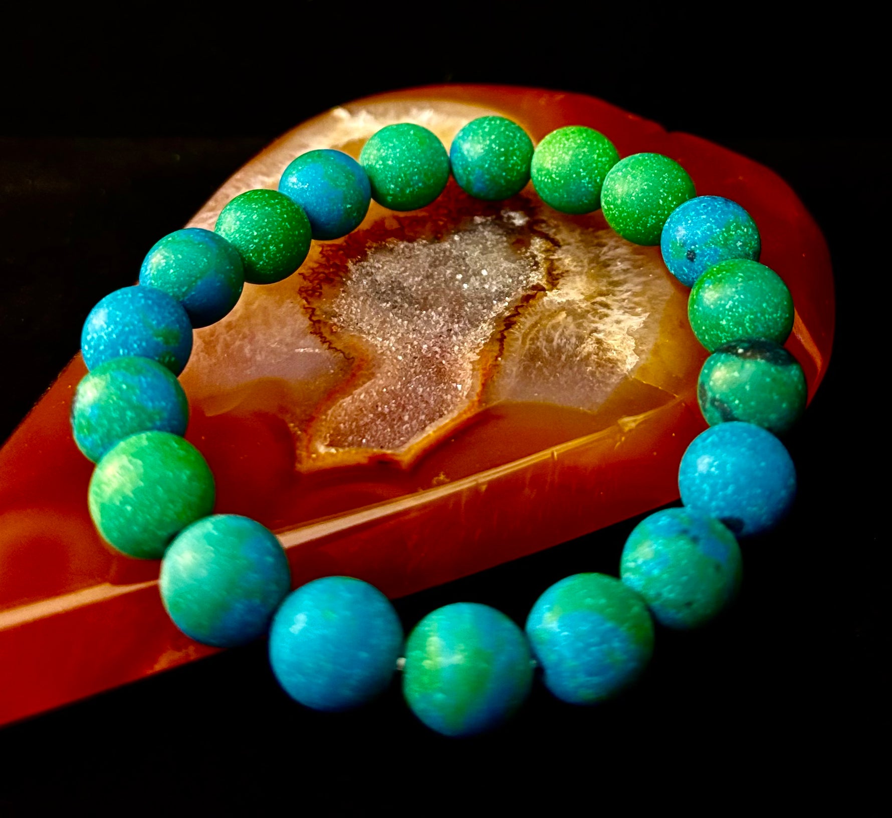 Matte Azurite Energy Bracelet — Genuine 10mm Blue-Green Azurite Stretch Bracelet for Medium to Large Wrists (7.25–8.5")