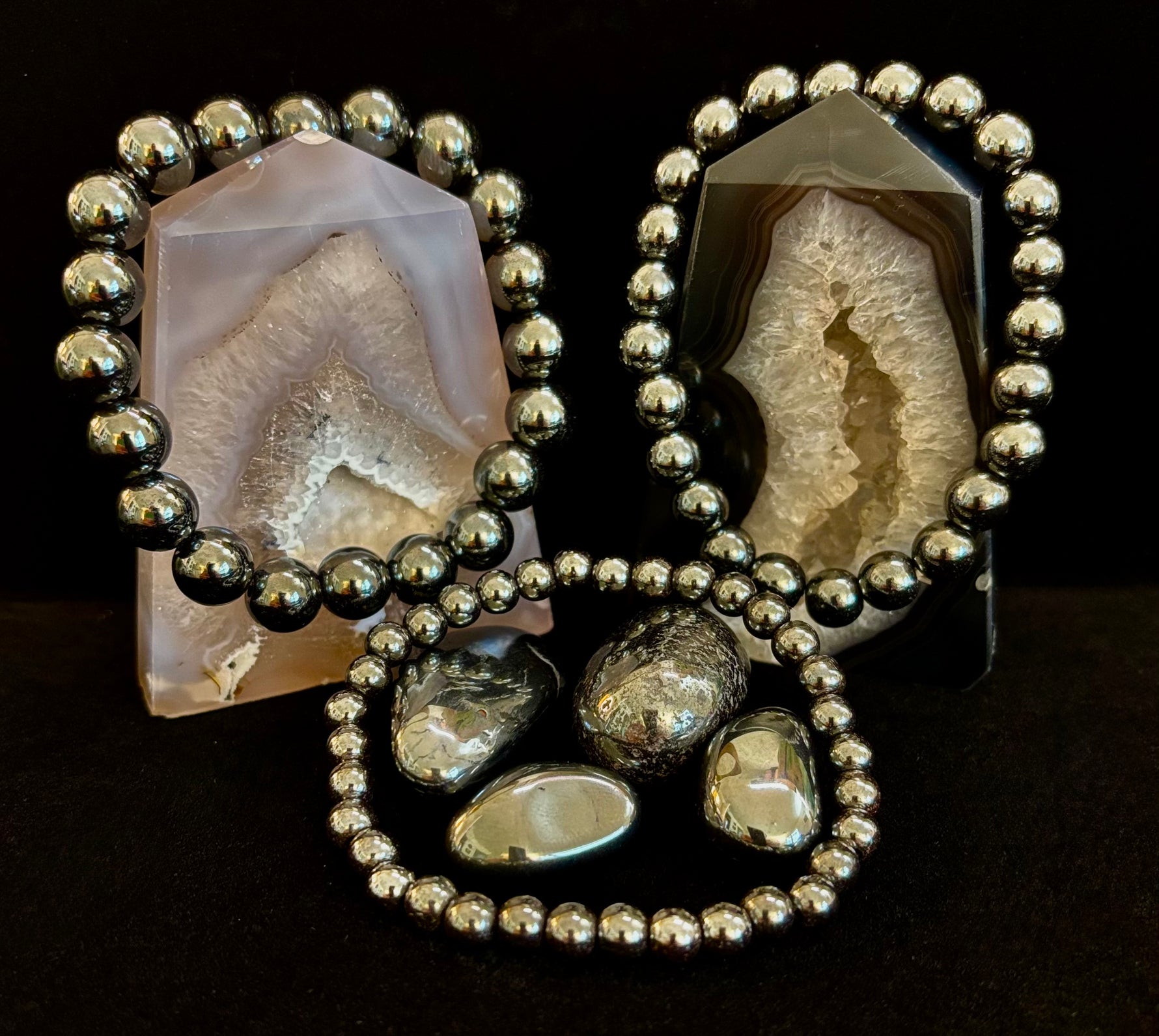Hematite Grounding & Protection Bracelet – Root Chakra Healing Stone for Confidence, Clarity & Stability (6mm, 8mm, 10mm Options)