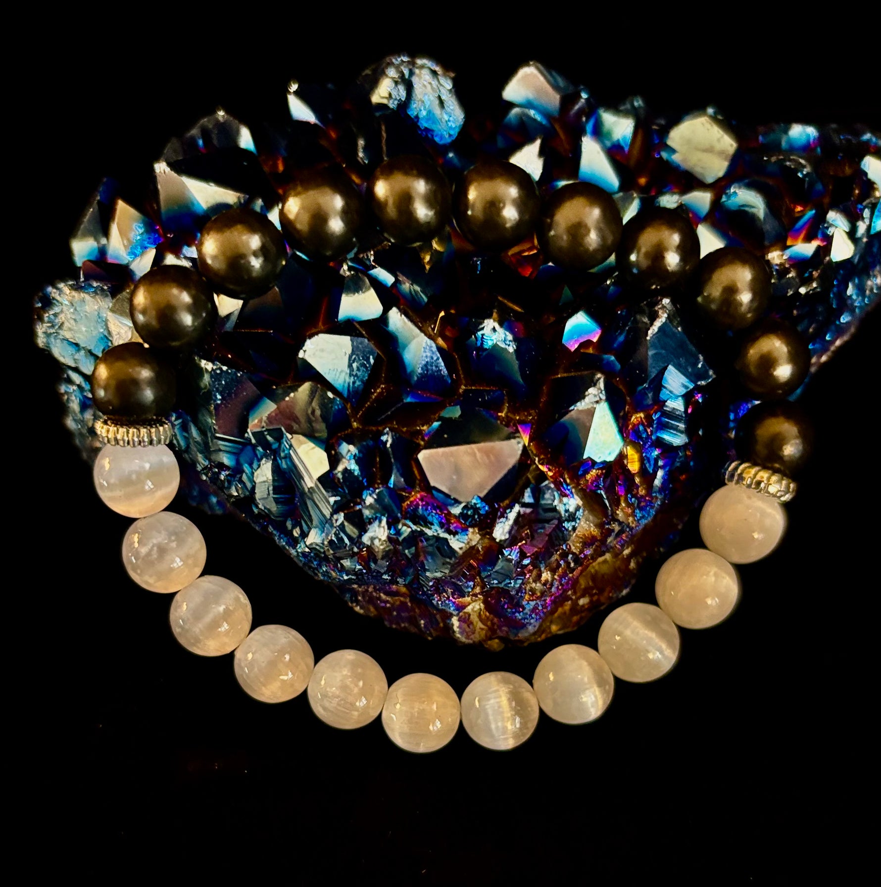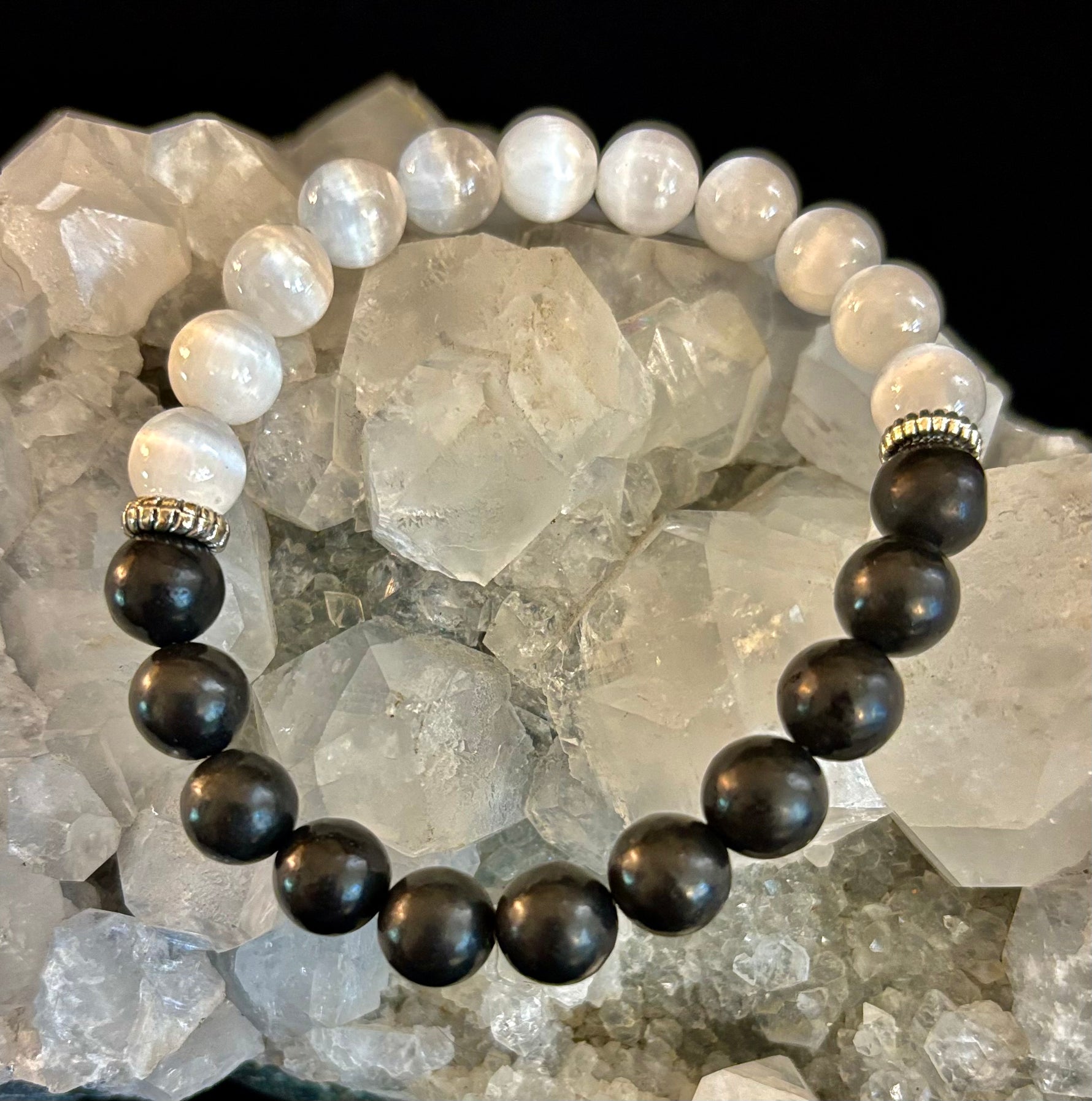 💎 Materials: Natural 8mm Shungite & Selenite gemstones