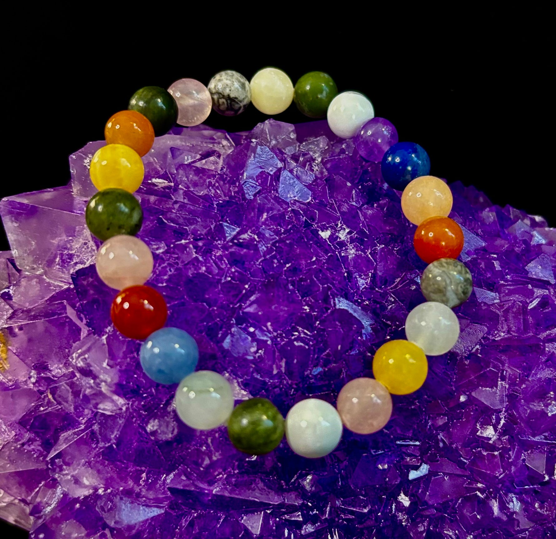 Bright, bold, and full of uplifting energy — our Rainbow Harmony Natural Stone Bracelet features a stunning mix of colorful 8mm gemstones, making every bracelet truly one-of-a-kind. Designed for medium wrists, this multicolor blend includes natural stones known for grounding, calming, creativity, prosperity, and protection.