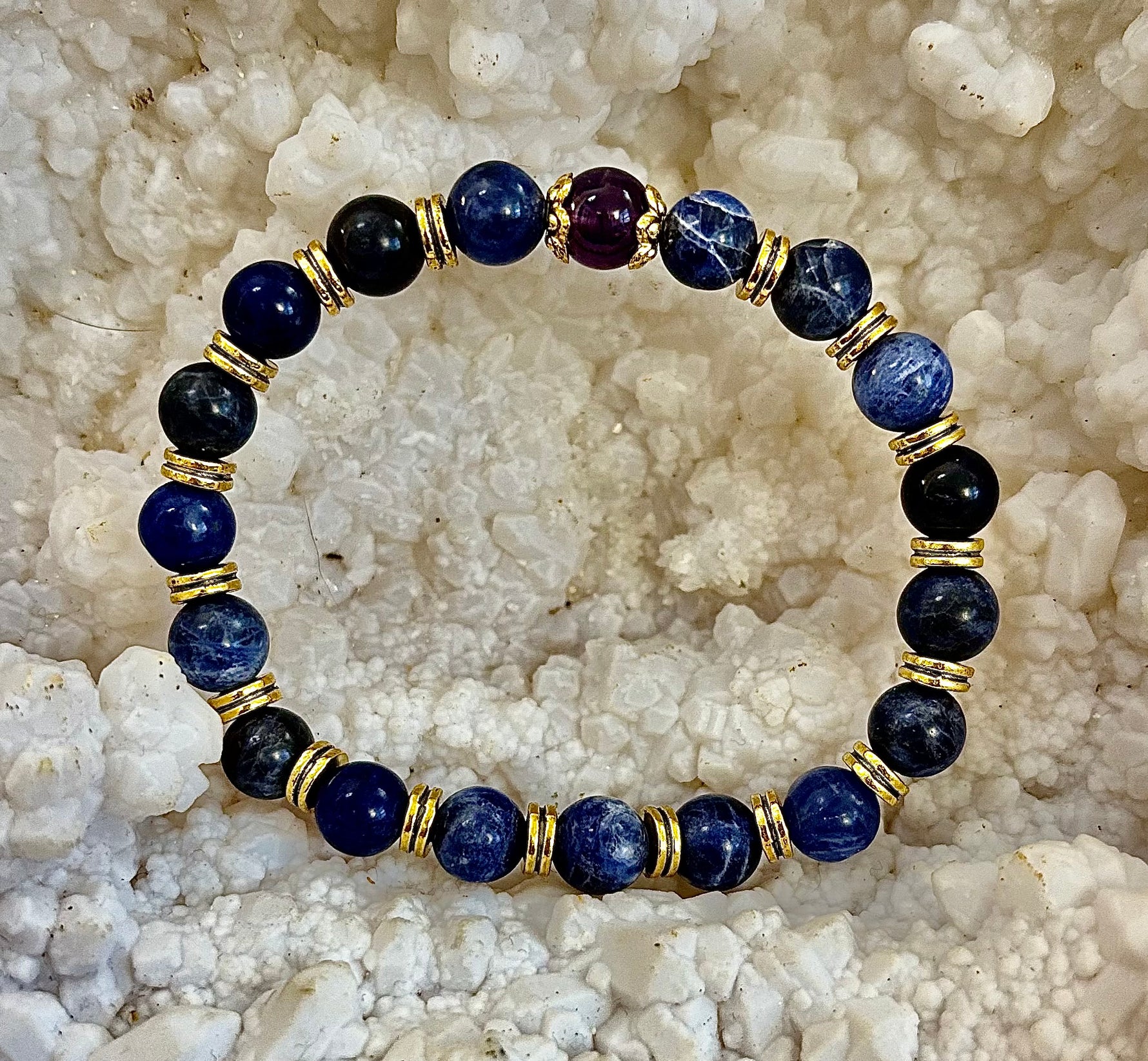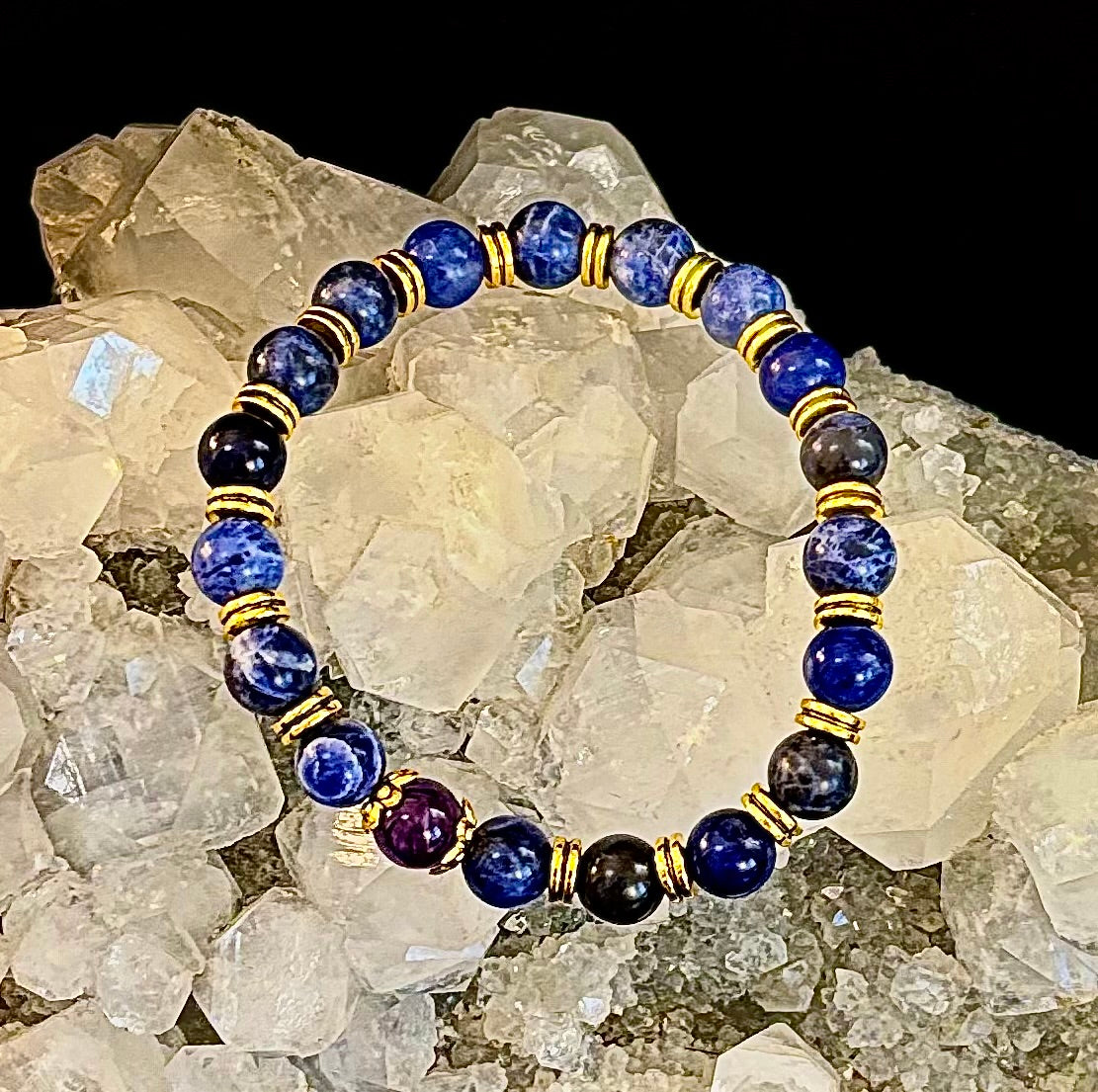 Reiki-Infused ANXIETY SUPPORT Bracelet – Sodalite & Amethyst with Gold Accents