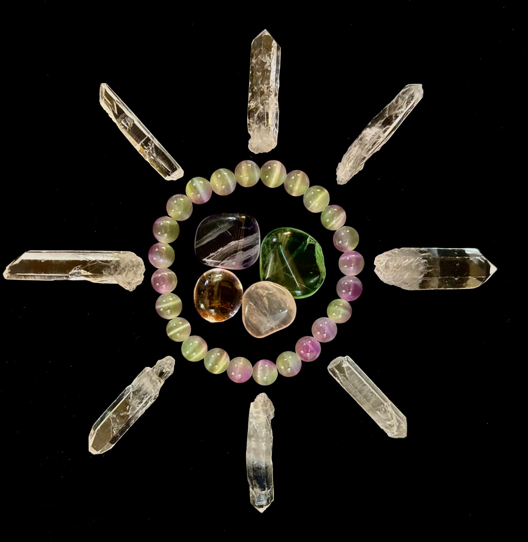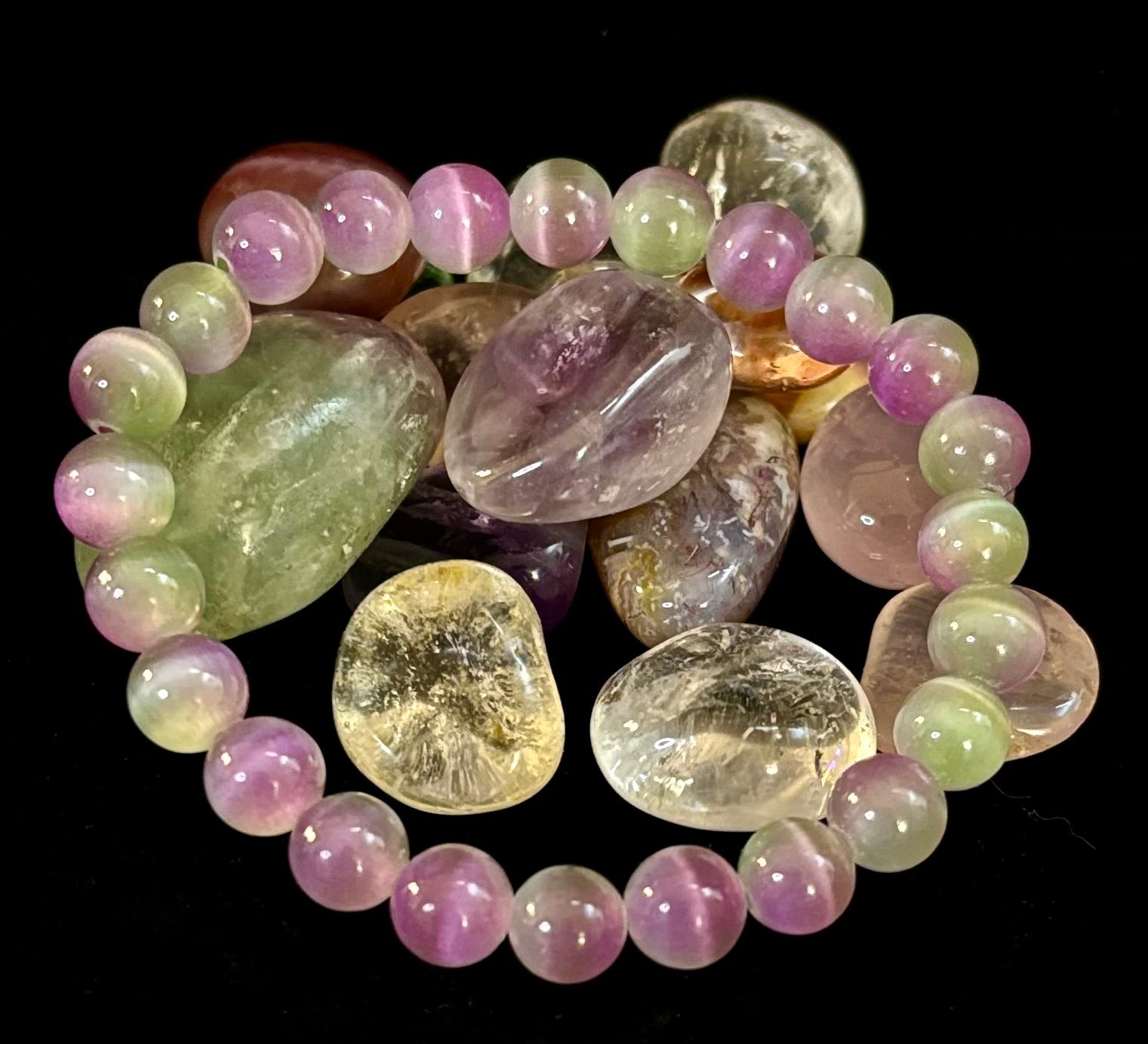 Our Unicorn Aura Glow Bracelet features gorgeous natural stones that melt from pastel lilac to soft minty green — like a rainbow sorbet sunset, captured in crystal form. 🍧✨