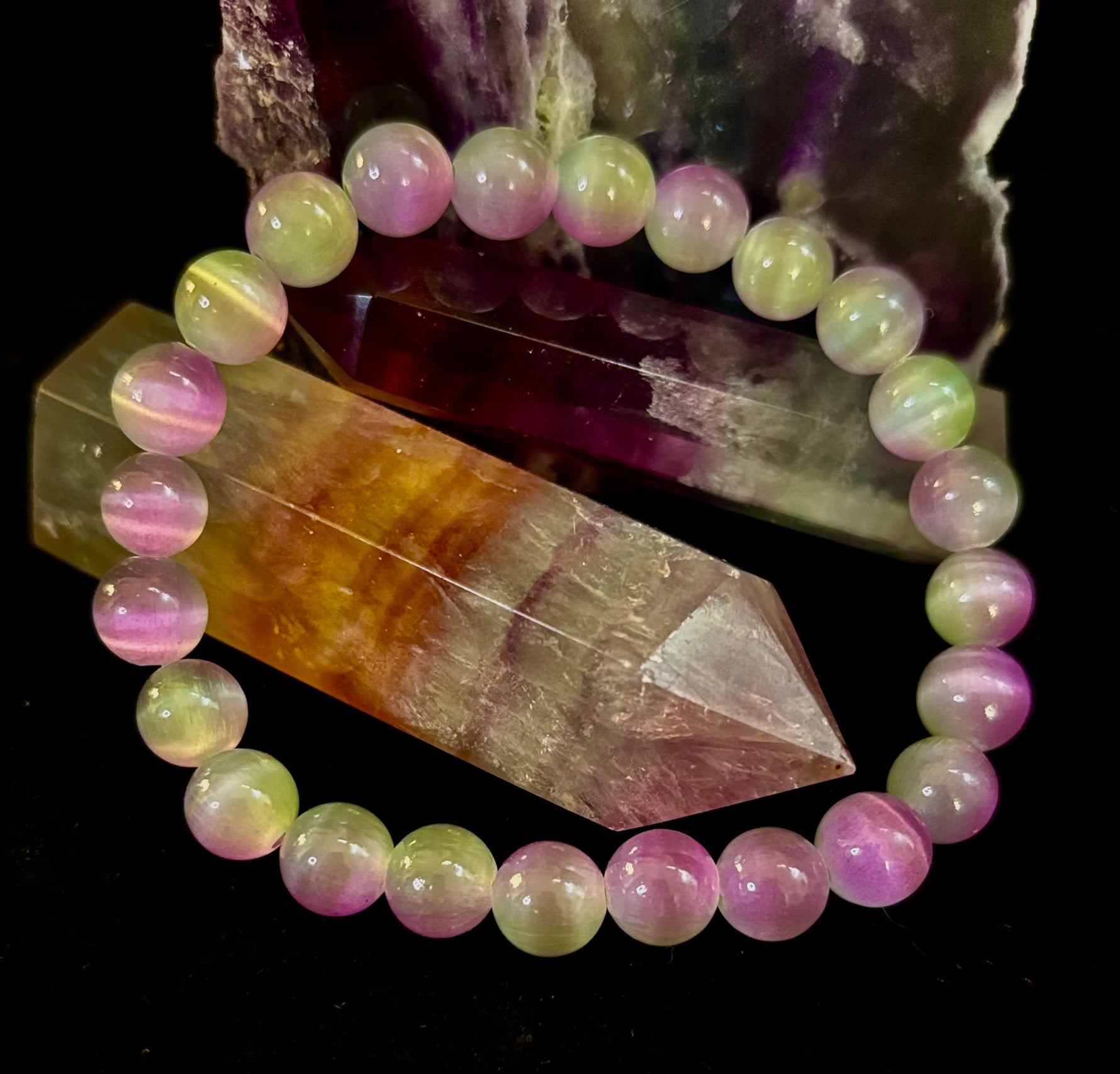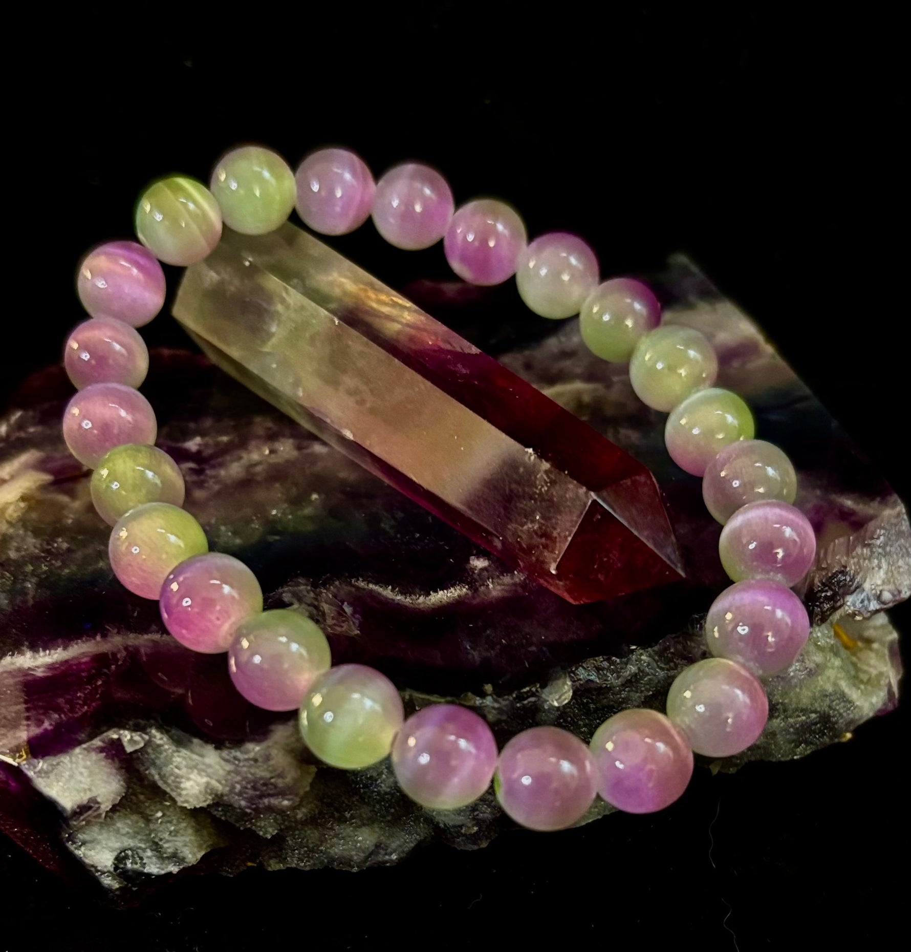 Whether you’re channeling your inner fairy, leveling up your aura glow, or just love wearing happy colors — this bracelet is ready to make every day feel a little more magical. 💜💚