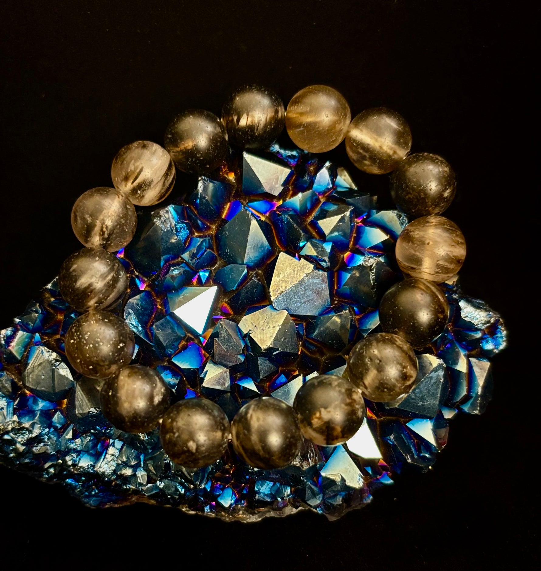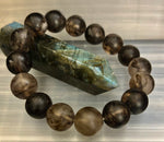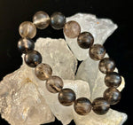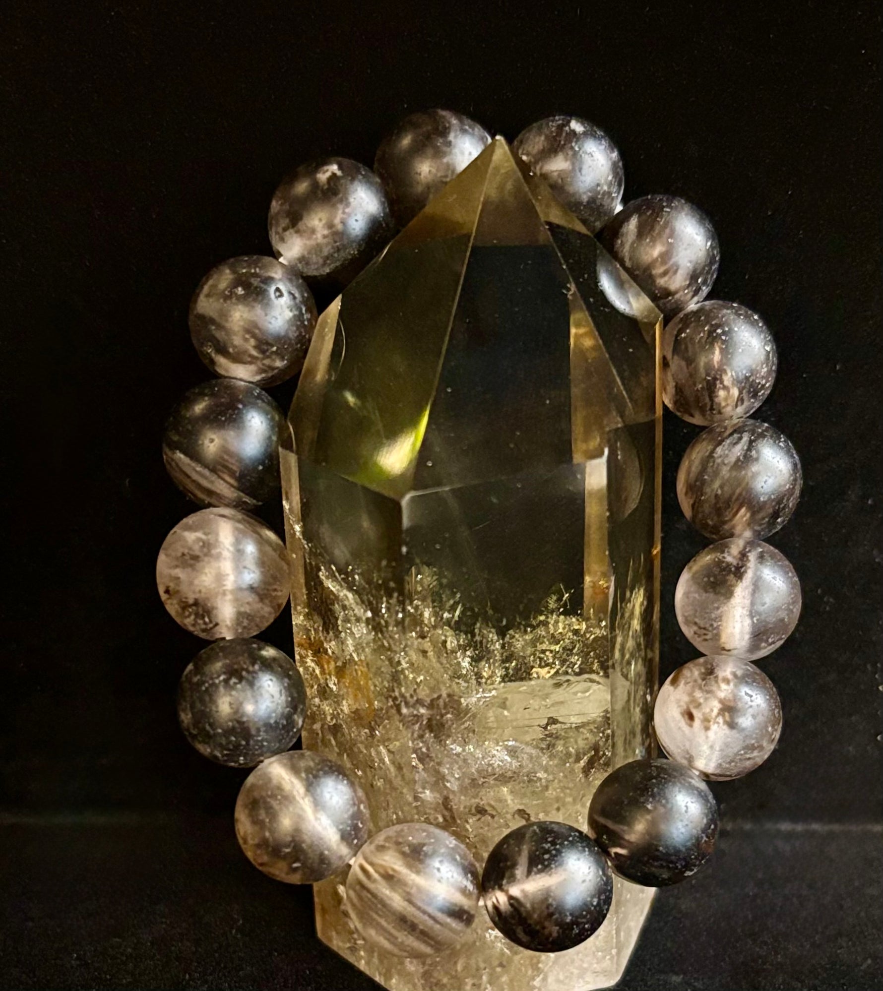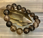 Command attention and protect your energy with our Watermelon Black Matte Stretch Bracelet, featuring large, 12mm natural stone beads in smoky swirls of black, grey, and subtle pink undertones. This bracelet delivers both bold visual impact and powerful metaphysical grounding.
