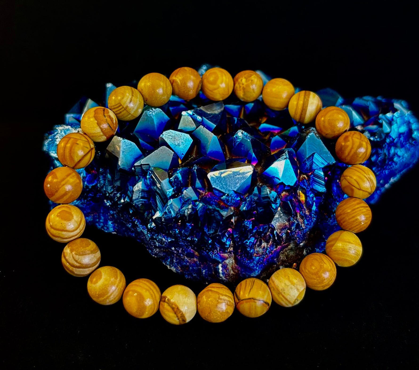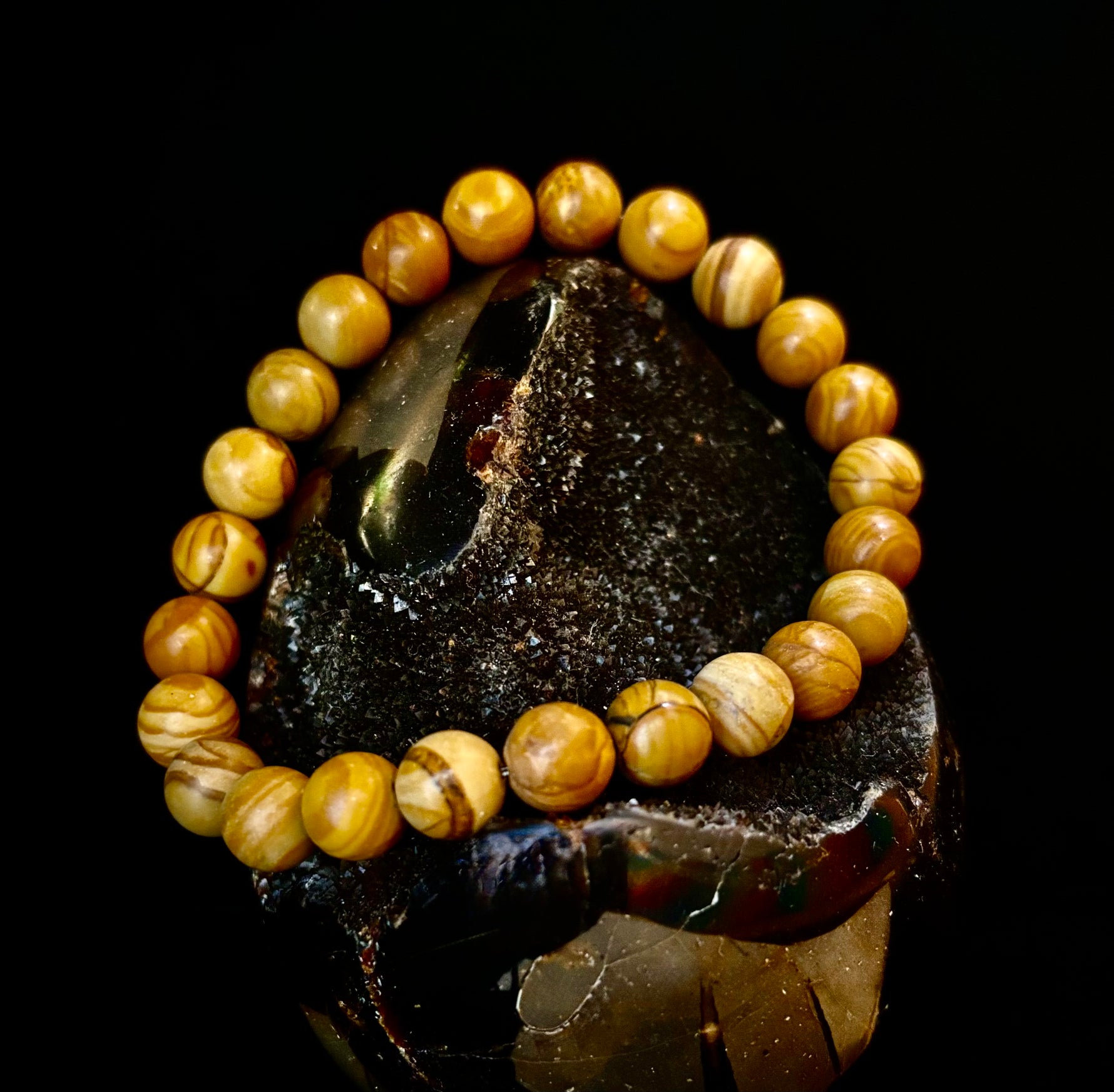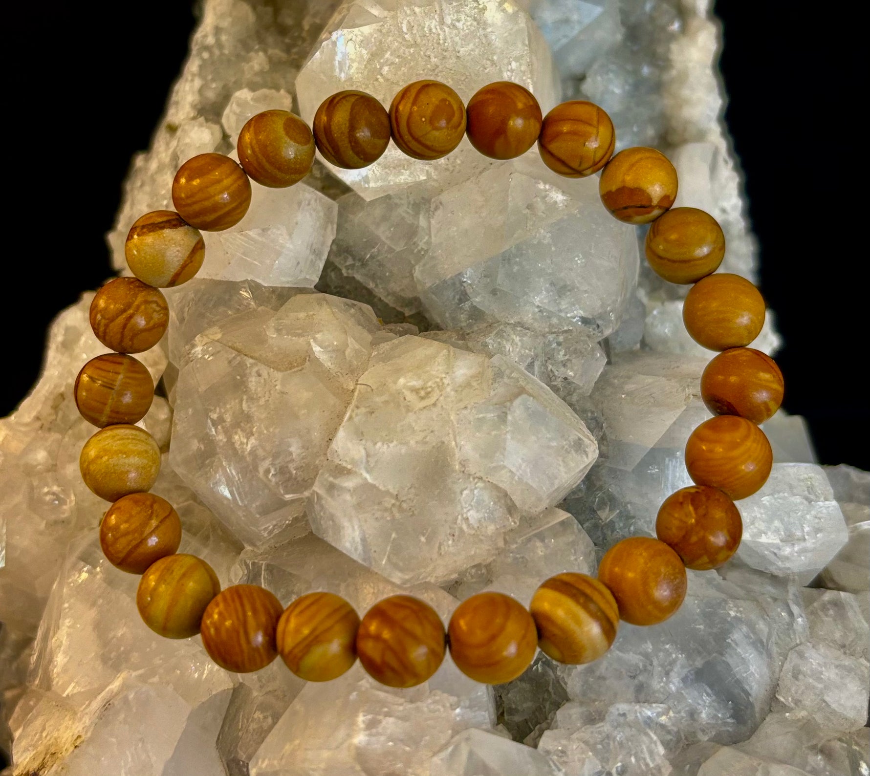 Wood Lace Agate 8mm Reiki-Infused Grounding & Manifestation Bracelet (Medium-Large Wrists)