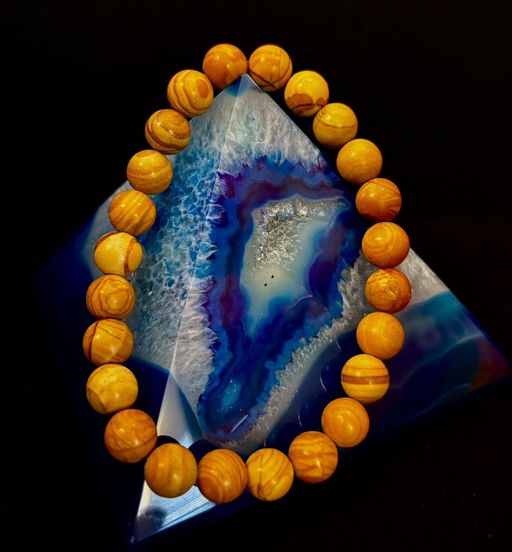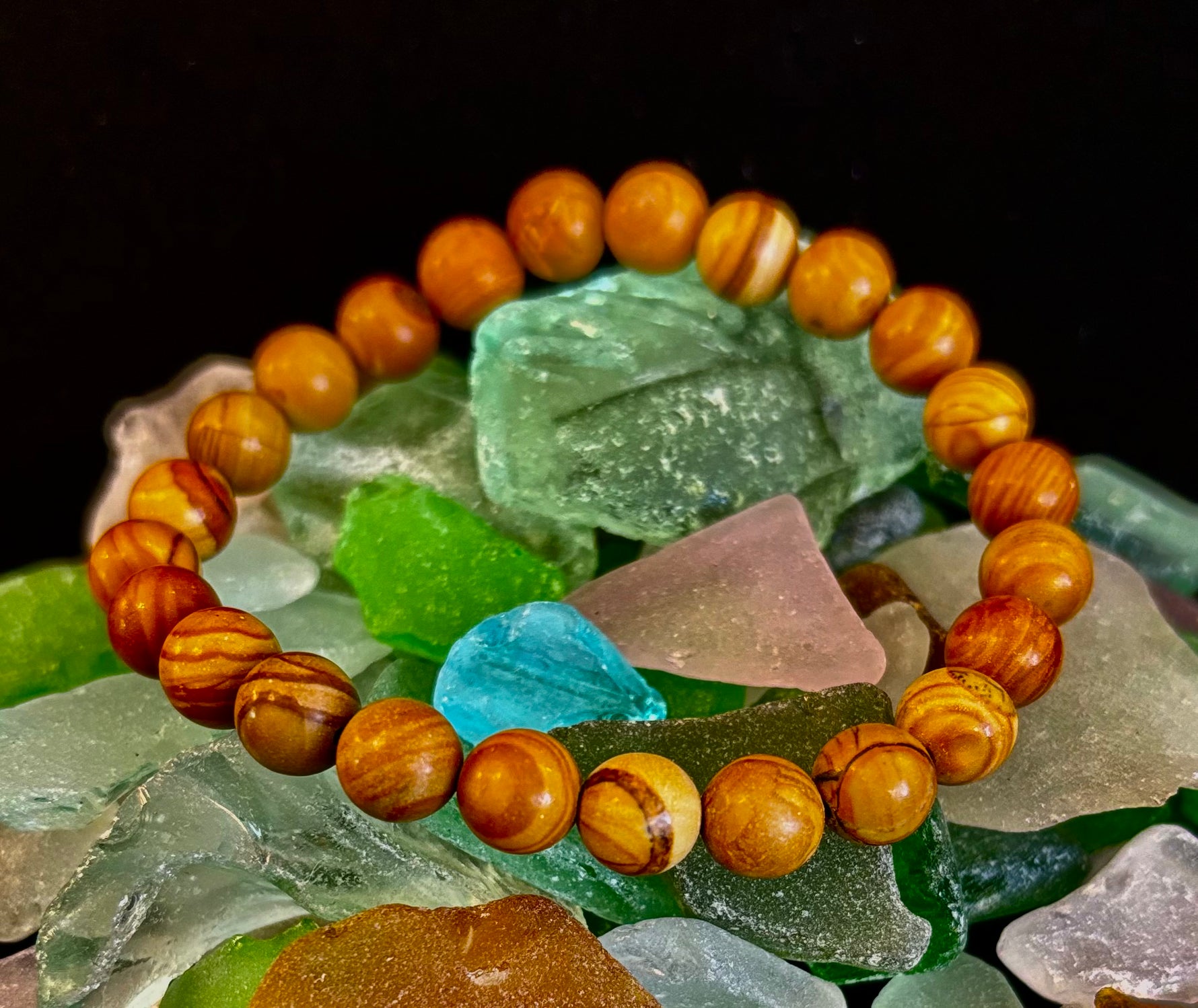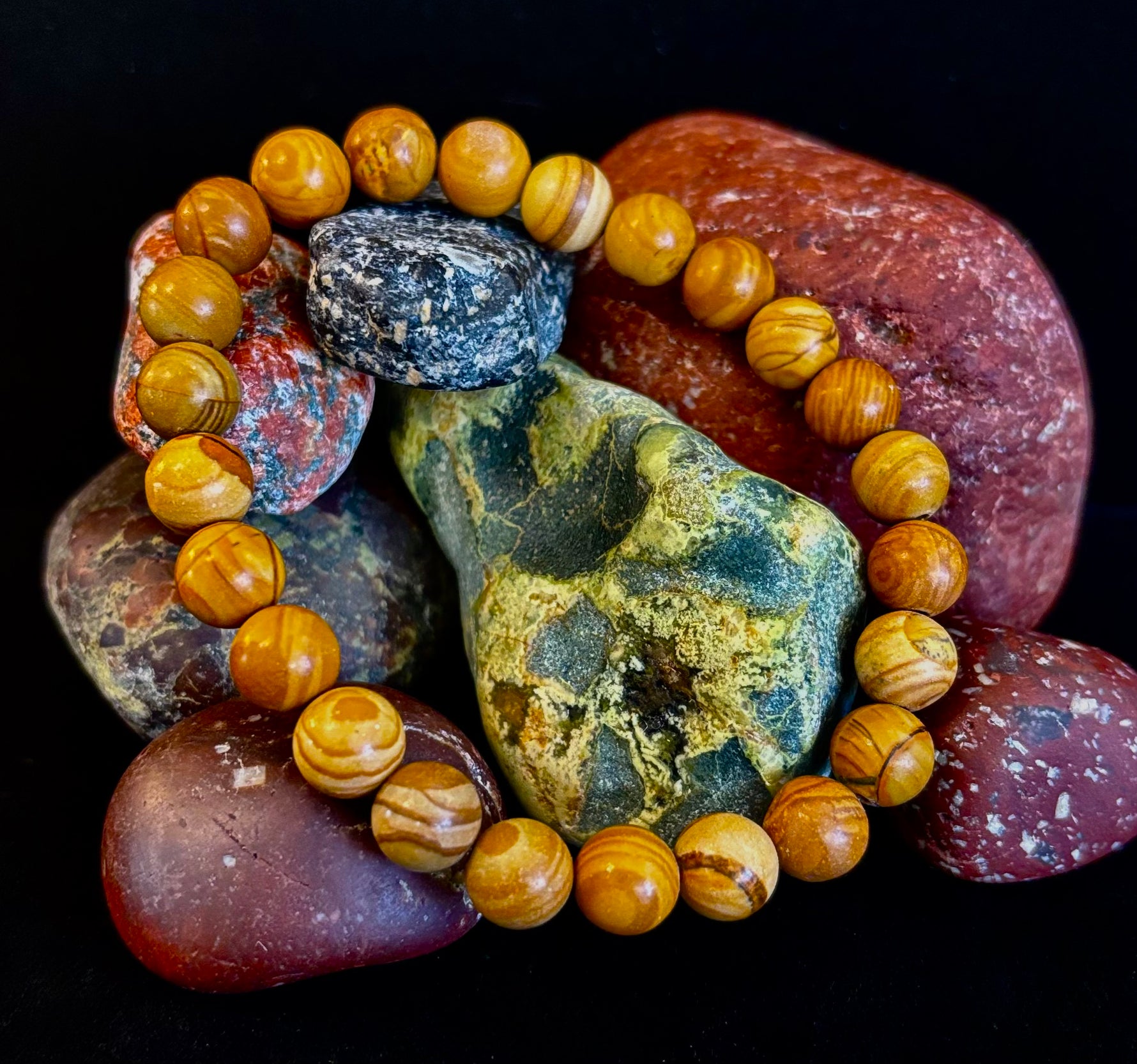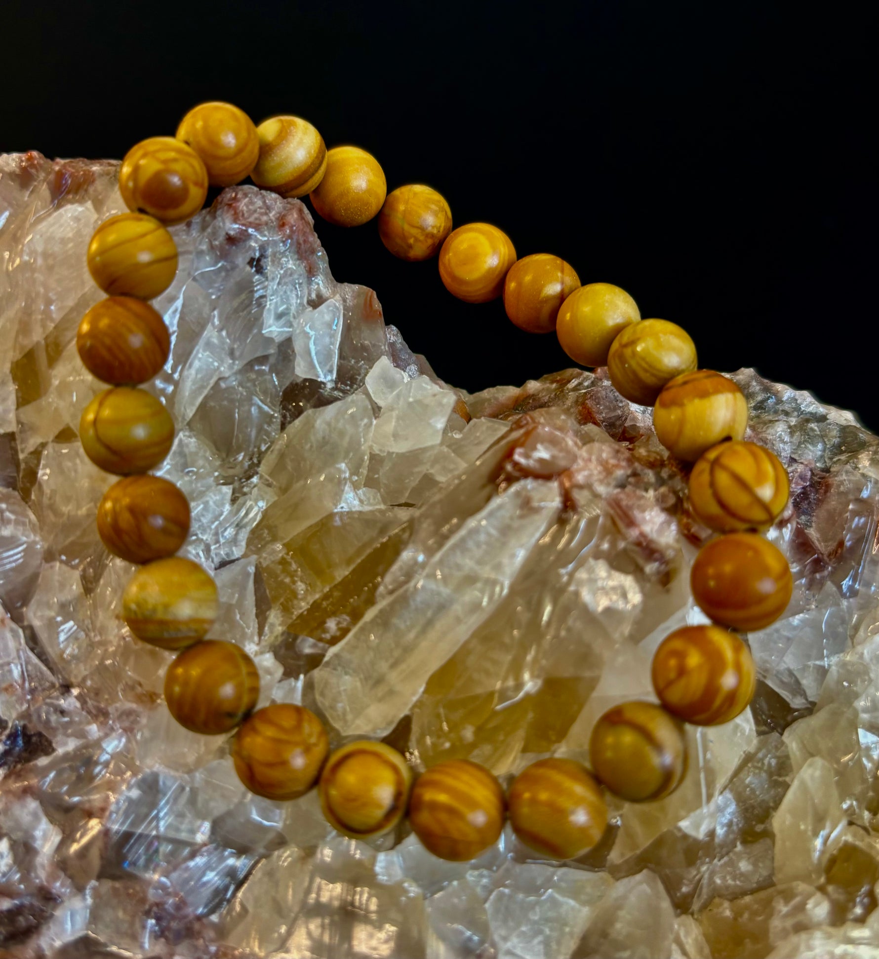 Wood Lace Agate 8mm Reiki-Infused Grounding & Manifestation Bracelet (Medium-Large Wrists)