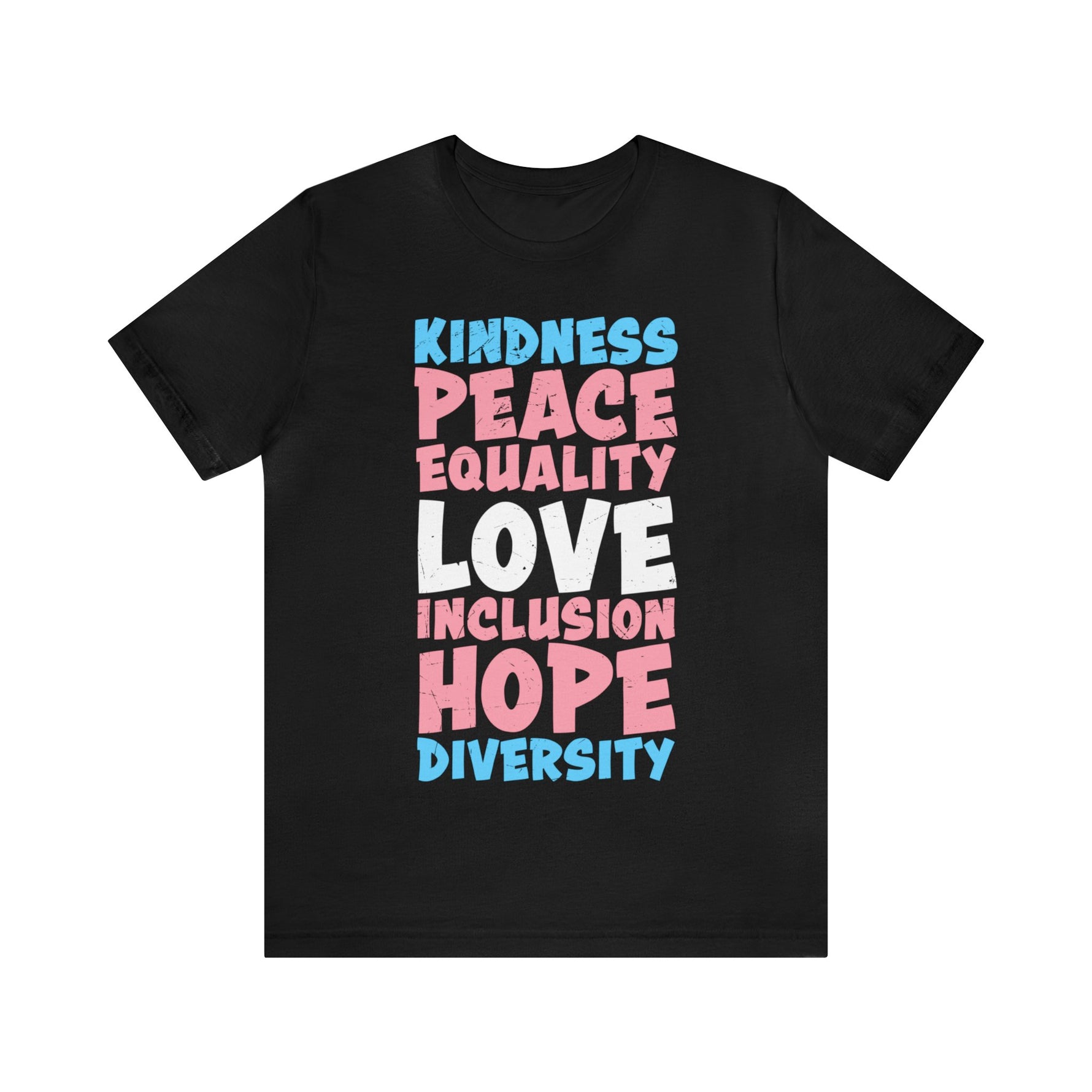Our Kindness, Peace, Equality, Love, Inclusion, Hope, Diversity design is a message we strive to live by daily. This powerfully messaged short sleeve tee not only sends a positive message out into the universe, it is soft, comfortable, breathable, and wears well wash after wash.