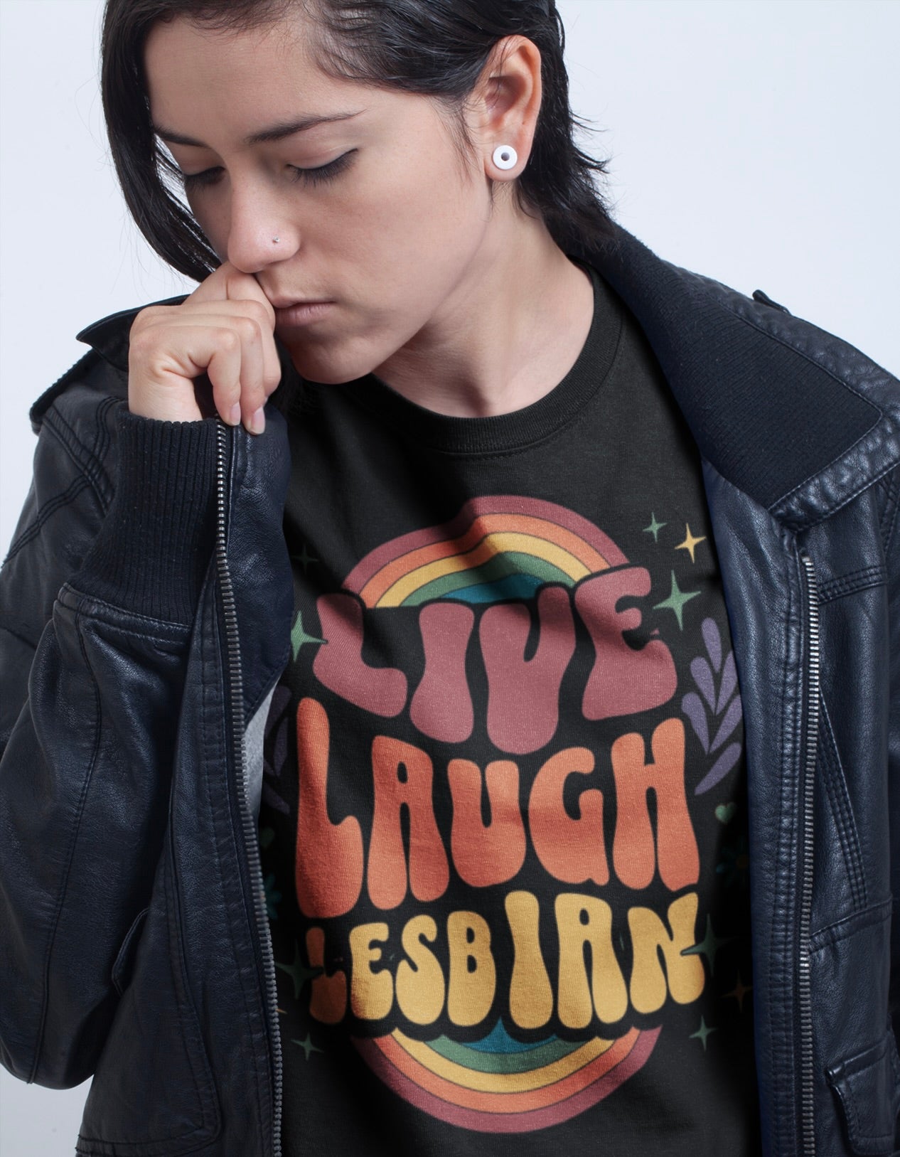 Live. Laugh. Lesbian. Say it loud and proud with this retro-inspired t-shirt celebrating queer joy, bold love, and vibrant identity. Featuring groovy typography, rainbow accents, and floral flair, this LGBTQ+ design is perfect for Pride parades, queer meetups, or just living your truth every day.
