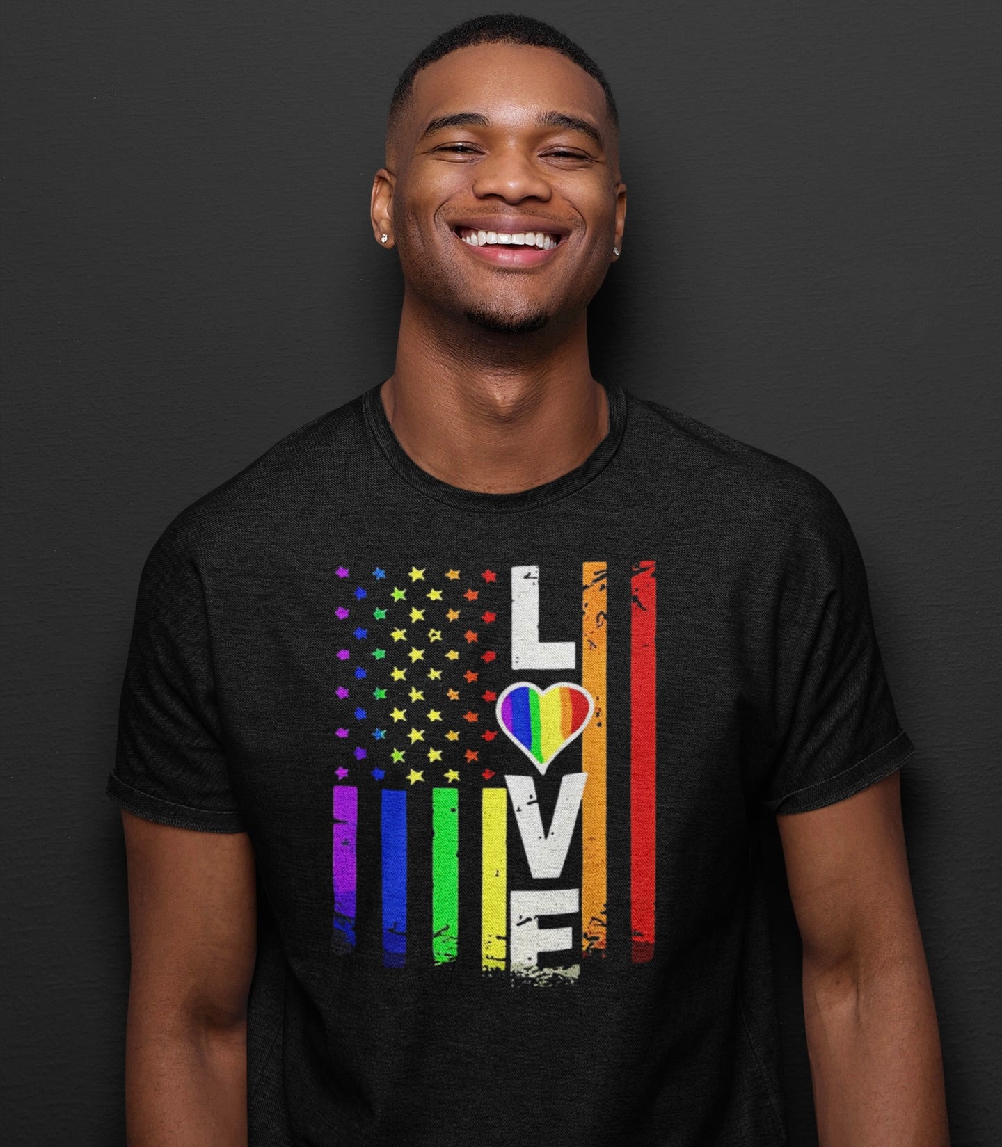 Love Pride Unisex Jersey Short Sleeve Tee - Vibrant Rainbow American Flag Design