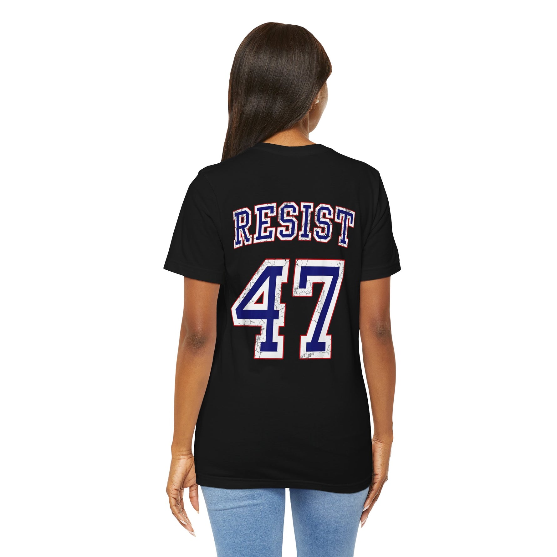 Introducing our printed on the back Resist 37 Short Sleeve Tee. On the front are simply the letters WF for Wicked Fabulous. This tee is perfect for those who value fashion, function, and activism. This tee is designed to bring a casual yet polished vibe to your wardrobe. Its lightweight fabric is breathable and ideal for layering, making it perfect for any occasion—from casual outings to semi-formal events. Designed with versatility in mind, this tee is relevant for anyone who loves expressing their individuality, particularly during events like music festivals, gatherings, or simple hangouts with friends. Whether you're celebrating a birthday, or a holiday get-together, this tee fits right in and elevates your outfit effortlessly.