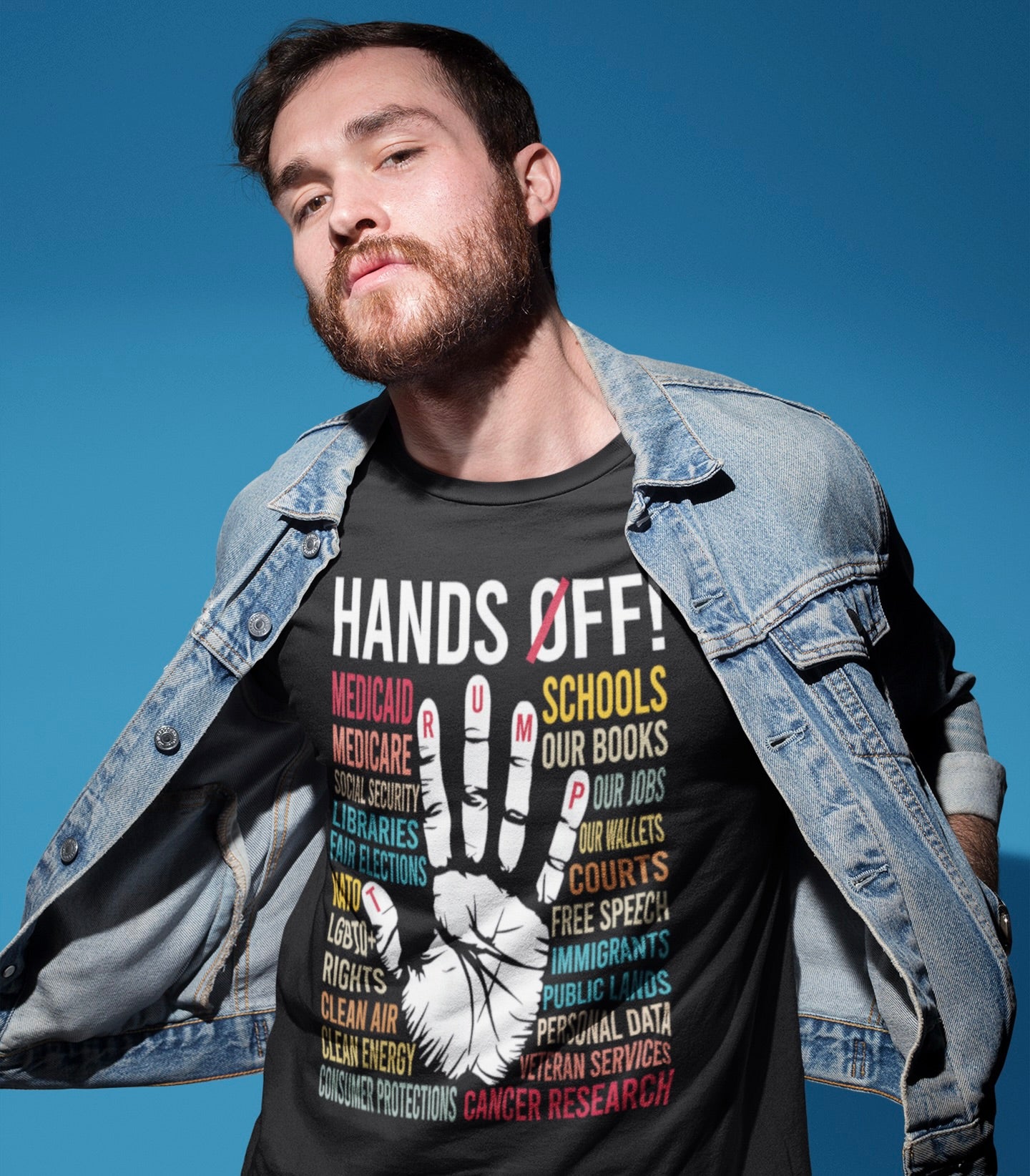Introducing our powerful protest HANDS OFF! short sleeve tee that combines comfort with a powerful message. This tee is perfect for anyone who values social justice and wants to make a statement. Made with 100% Airlume combed and ring-spun cotton, it feels soft against your skin and is lightweight enough to be layered for any occasion. Whether you’re attending a rally, hanging out with friends, or just enjoying a casual day out, this tee adds a touch of flair to your wardrobe. Ideal for activists, educators, or anyone passionate about their rights, this shirt is a meaningful addition for holidays like International Human Rights Day or during Pride Month. Wear it proudly while promoting awareness around important societal issues.