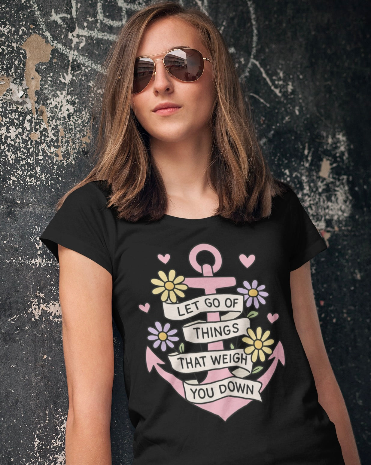Let Go of Things That Weigh You Down T-Shirt – Mental Health Anchor Design