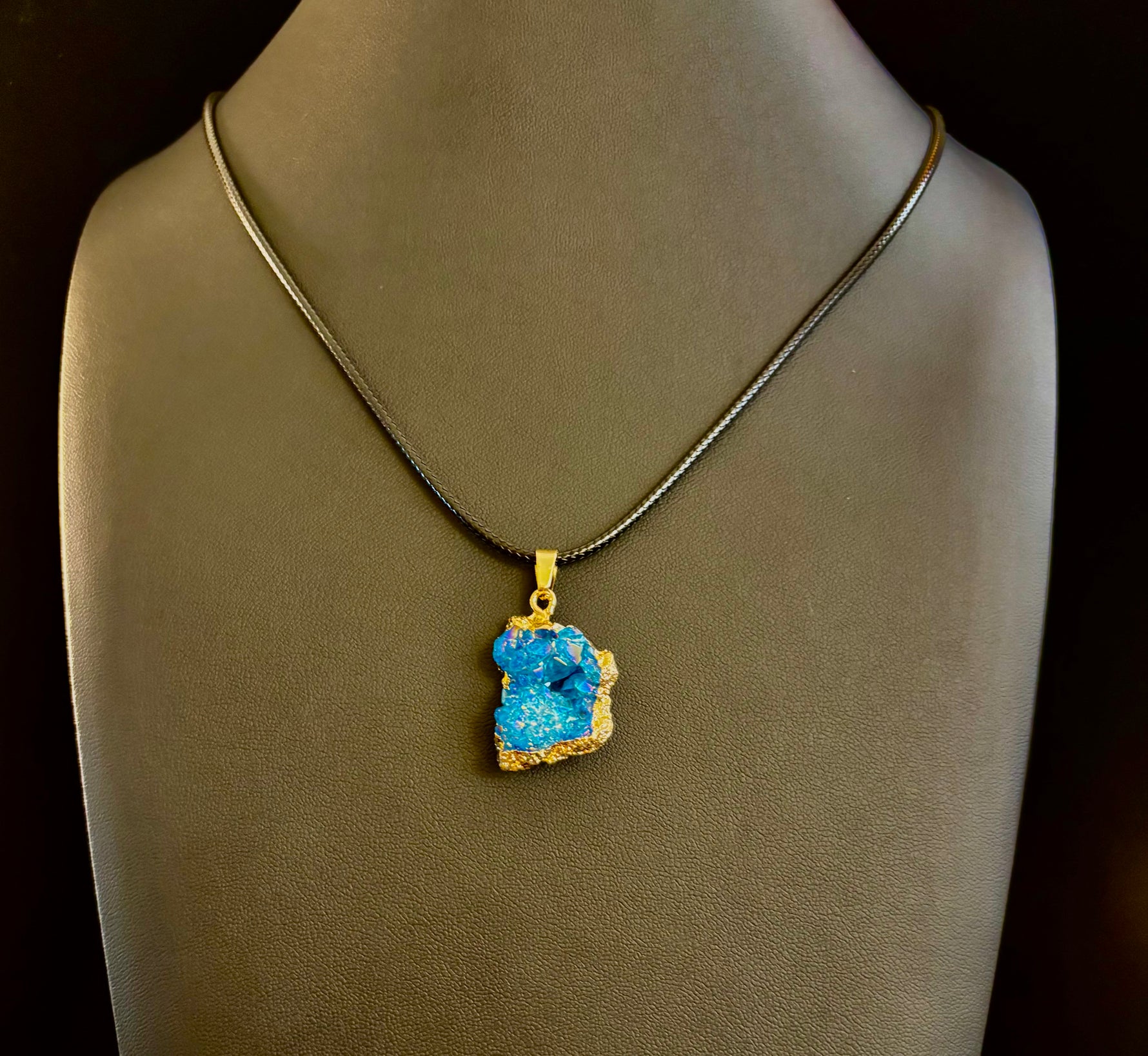 Asymmetrical Natural Crystal Agate Geode Pendant Necklace – Raw Beauty, Vibrant Energy