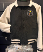 Our Limited Edition Varsity Jacket is a true masterpiece. Made with black vegan suede and sleek white PU leather sleeves, it’s the epitome of timeless cool that will never go out of style.