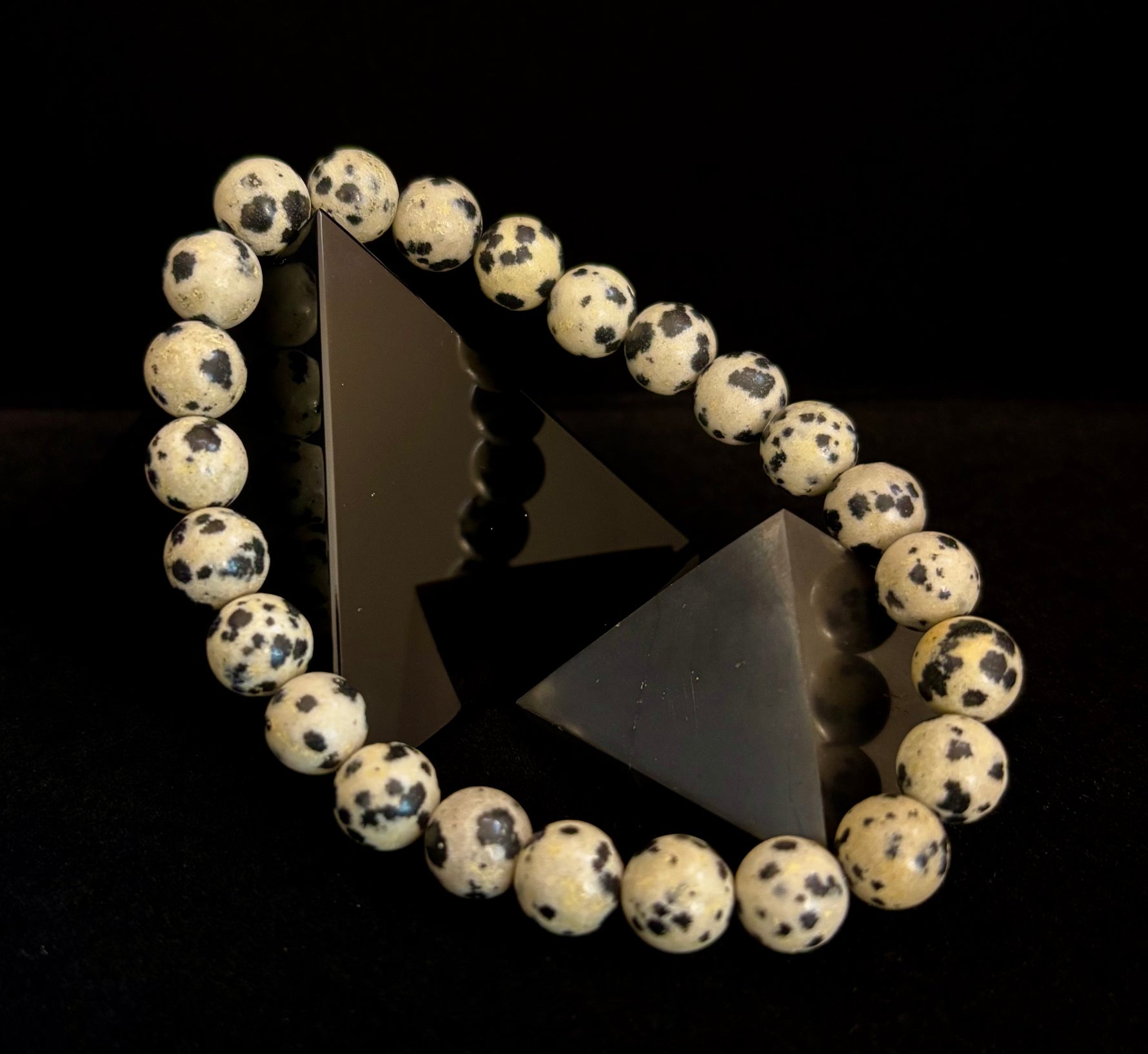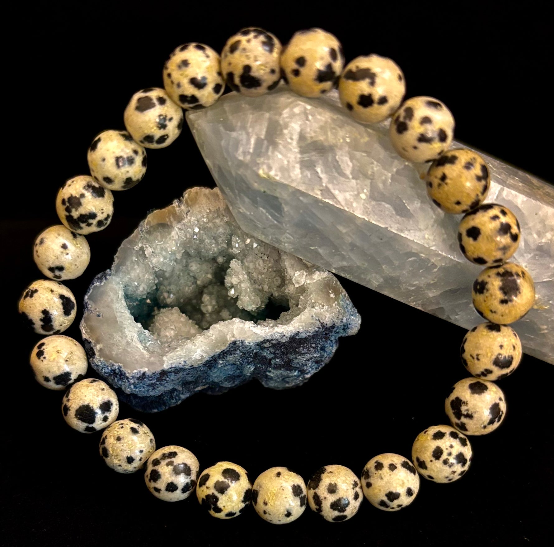 Whether you're drawn to its unique speckled look or its powerful metaphysical properties, this Dalmatian Jasper bracelet is perfect for everyday wear, energy work, or gifting to someone who could use a little more balance and fun.