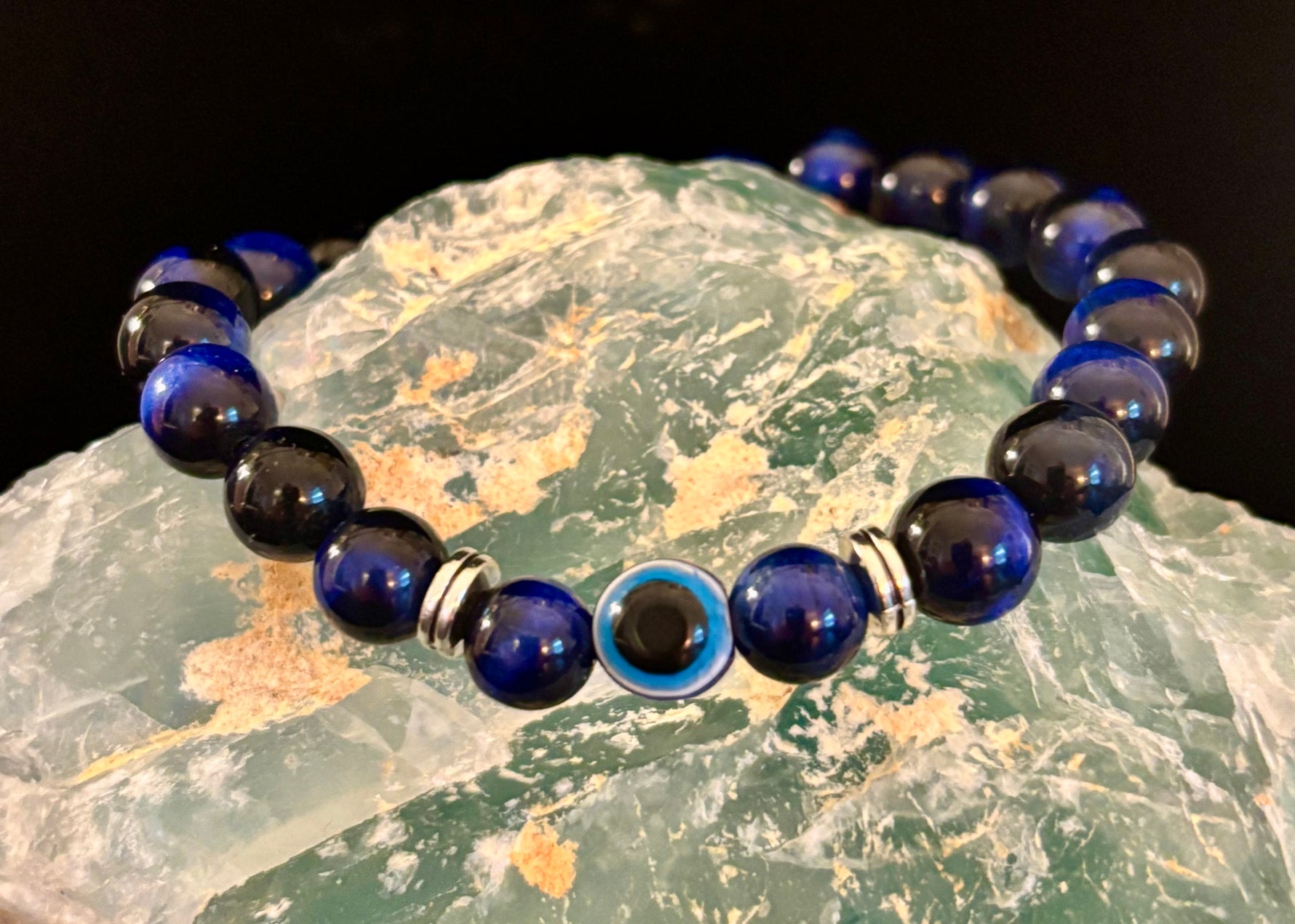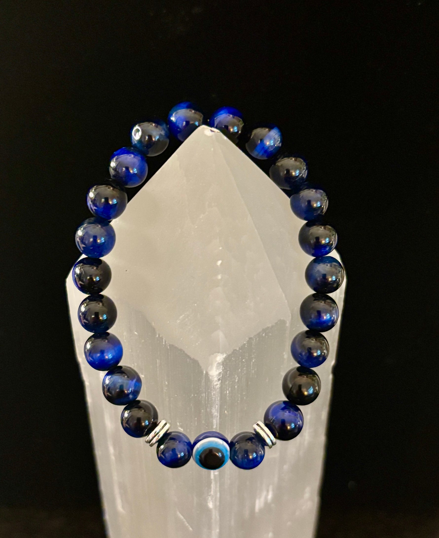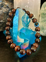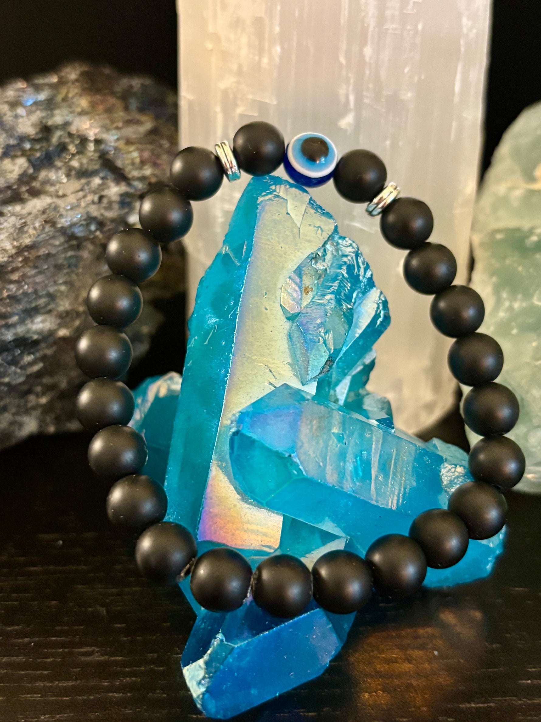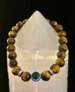 Hand-strung with care, this stretch-fit bracelet is perfect for everyday wear, meditation, or gifting to someone who values both style and spiritual protection. Its warm, golden-brown hues and eye-catching design pair beautifully with your favorite chakra, Pride, or grounding pieces.