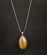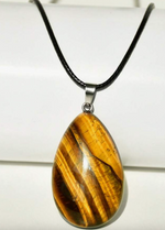 Channel fierce energy and earthy sophistication with our Natural Tiger Eye Stone Pendant Necklace, elegantly strung on a durable black leather rope. This bold water-drop shaped pendant showcases the captivating golden-brown chatoyancy of Tiger Eye—a powerful stone known for promoting confidence, clarity, and protection.