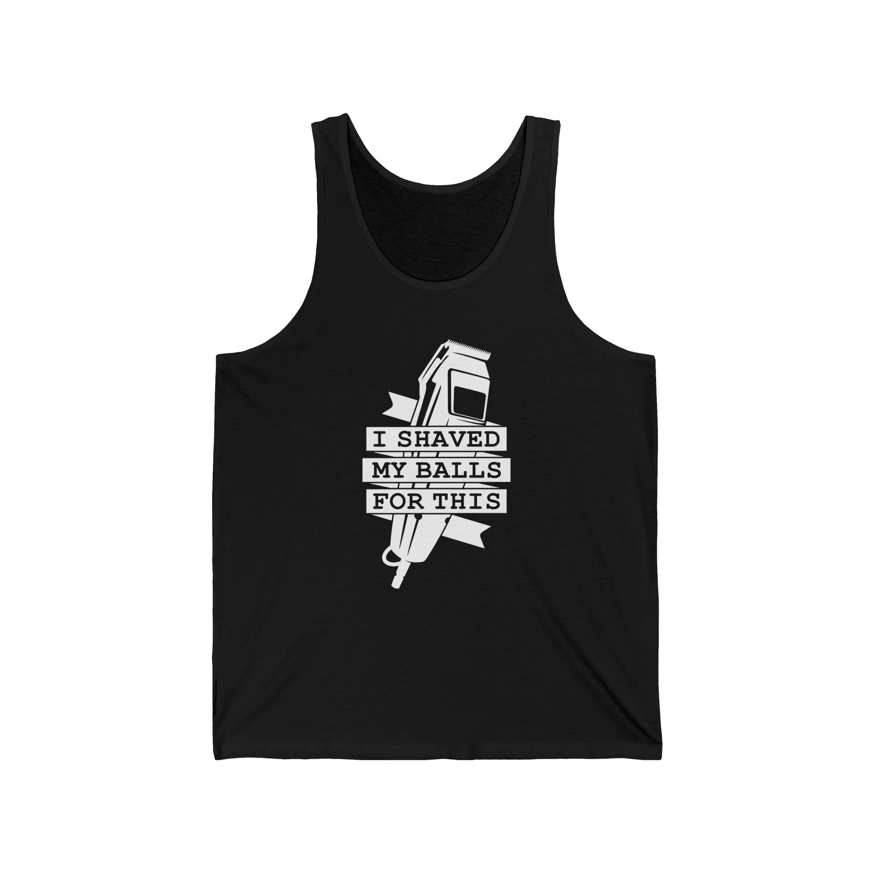 Our naughty "I Shaved My Balls For This" tank really says it all. You ever get all dressed up, manscape and more, to only arrive at your destination and it is a bust. Been there, done that, now get the tank.