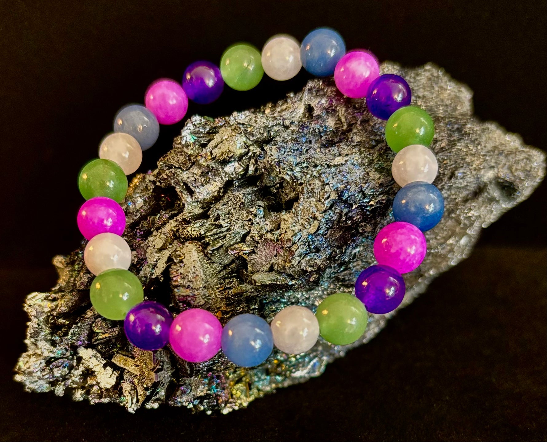 Add a burst of color and healing energy to your day with our Cosmic Skittles Colored Agate Bead Bracelet, crafted from vibrant 8mm polished agate stones in a radiant mix of hues. Known as a powerful grounding and stabilizing crystal, agate helps balance the mind, body, and spirit, making this bracelet both beautiful and energetically supportive.