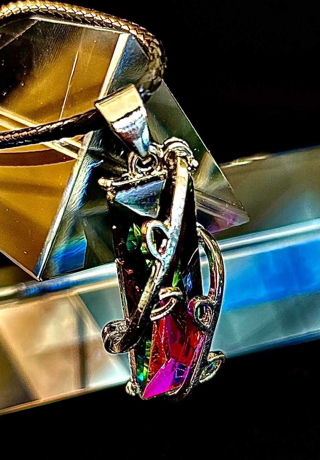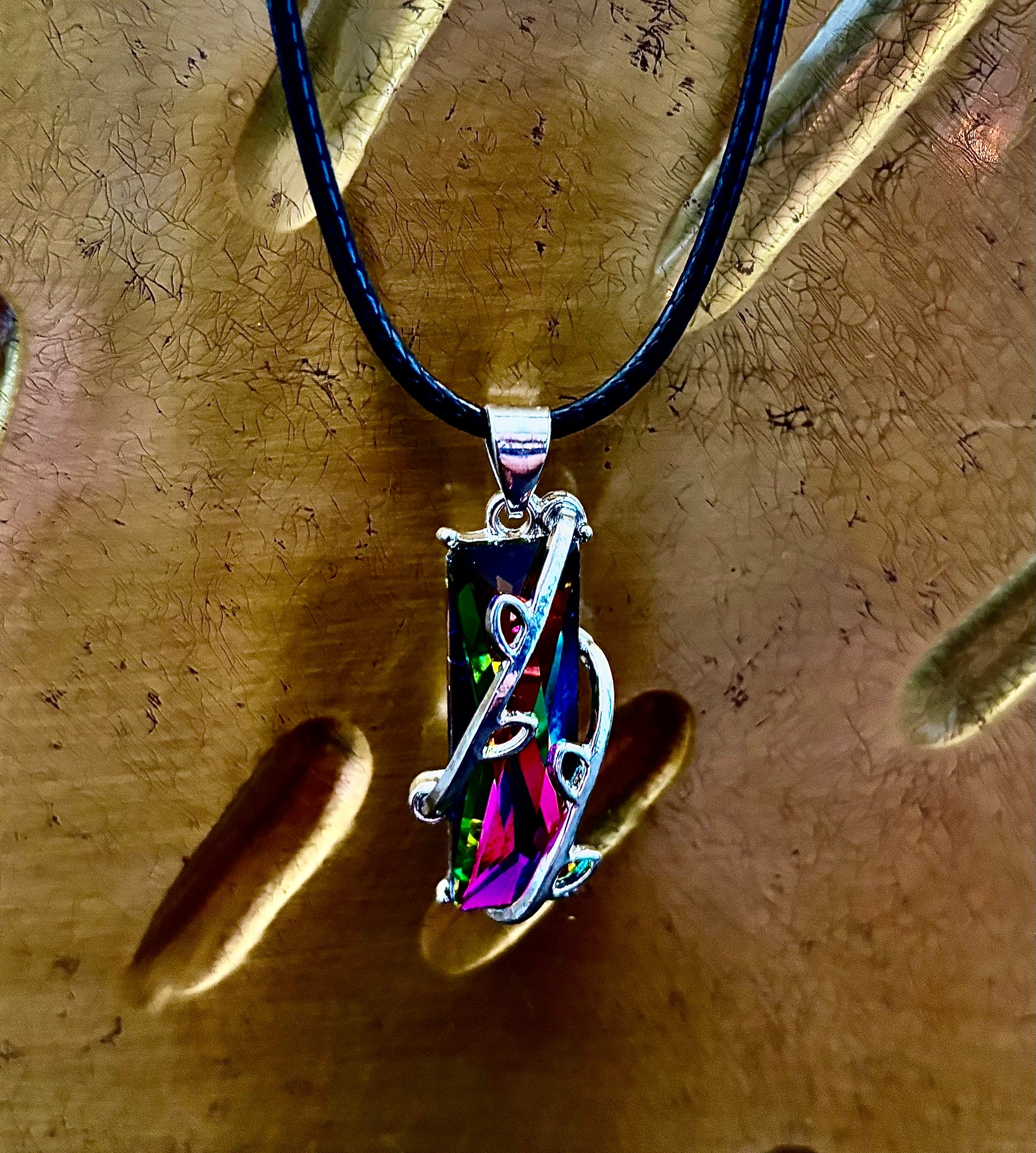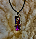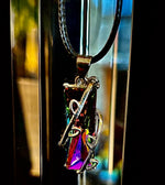 Prismatic Energy Pendant Necklace | Colorful Crystal Branch Design on Leather Cord