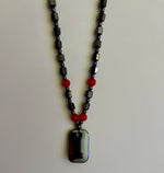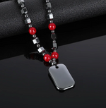 Hero Shield Magnetic Hematite Necklace – Red Power Beads + Dog Tag Pendant (Men’s Protection Jewelry)
