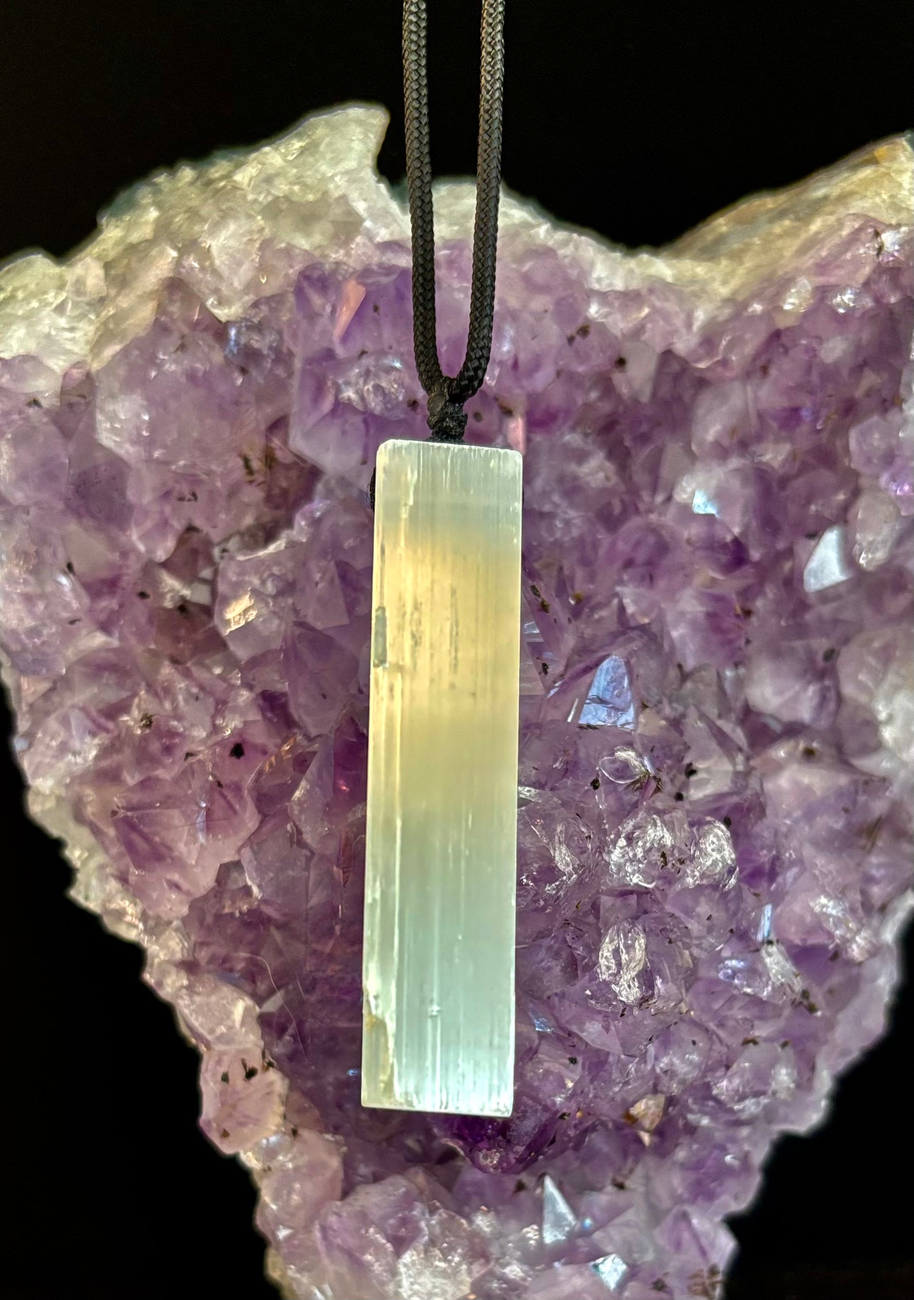 Selenite Pendant Rough Stone Necklace – Cleanse, Balance & Protect