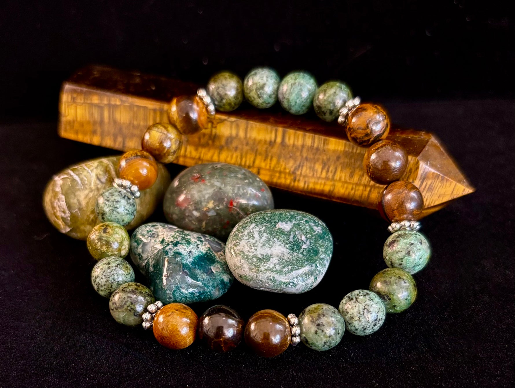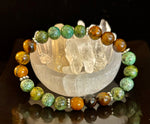 Grounded in strength and style, our Tiger Eye & African Turquoise Bracelet is your new everyday essential for boosting self-belief and bold energy. Hand-strung with 8mm natural stones, this unisex bracelet combines the fierce protection of Golden Tiger Eye with the earthy wisdom of African Turquoise, known as the "Stone of Evolution."
