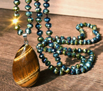 Tiger Eye Pendant Crystal Bead Necklace – Handmade & Bold